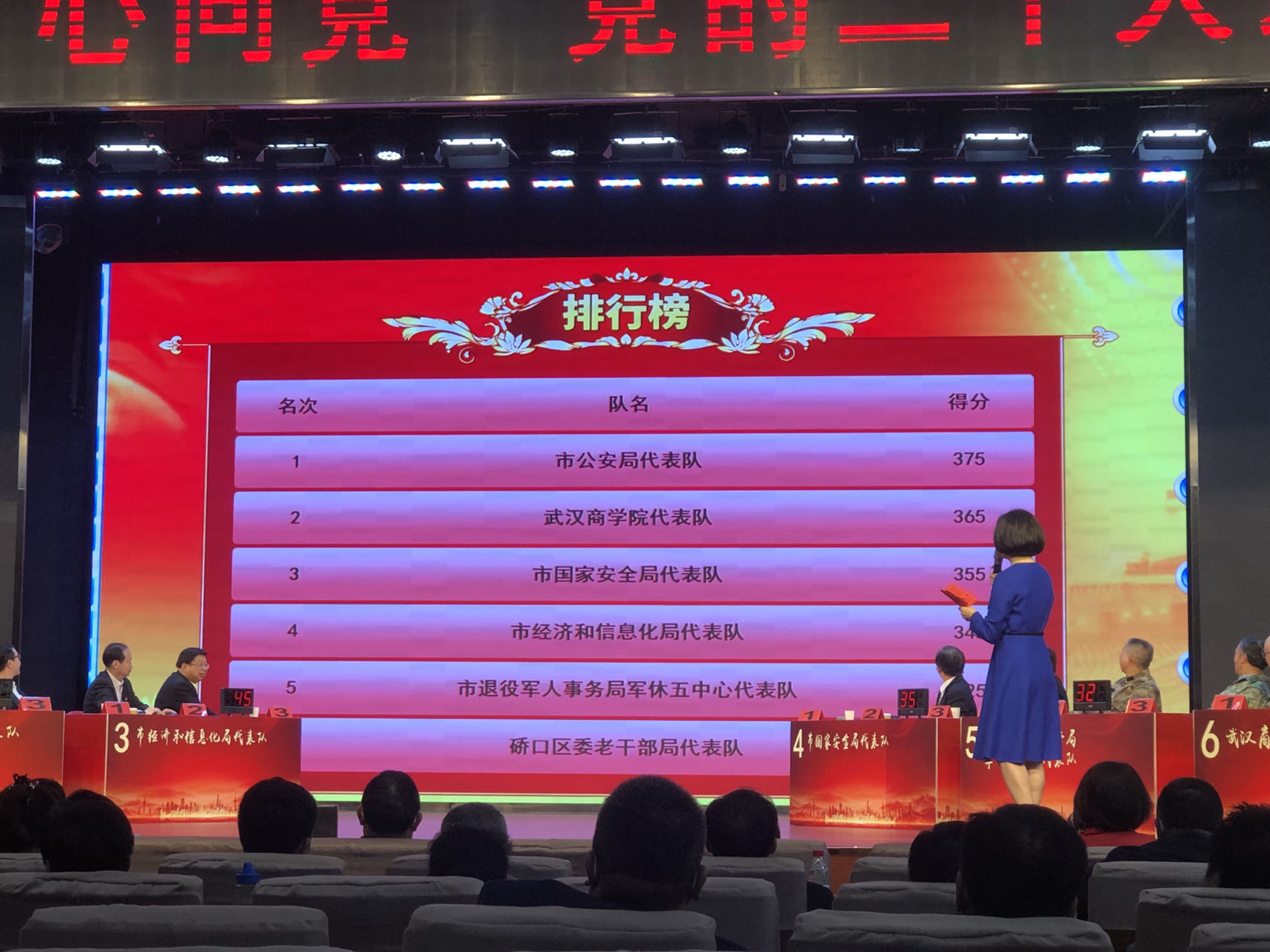 本次比赛分为初赛和决赛,初赛阶段,我校三位老同志准备充足、沉稳答题,笔试成绩脱颖而出,轻松晋级决赛。决赛采取现场答题积分制,我校参赛代表队思维敏捷、踊跃抢答,展现出过硬的知识储备与理论功底。在第四个环节答题结束后,我校代表队与市公安局代表队排名并列第一。按比赛规则启动加时赛,经过激烈的角逐,最终我校代表队取得365分的好成绩,荣获武汉市老干部知识竞赛二等奖。