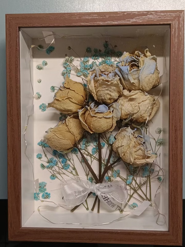 2022级西式烹饪工艺二班的朱丹妮制作的标本作品具有纪念意义。她将友人送给她的花束晒干、密封,制成可以永久观赏的“永生花”。朱丹妮说:“比起看着这束花慢慢枯萎,我更想通过自己的努力将这份回忆定格下来。”