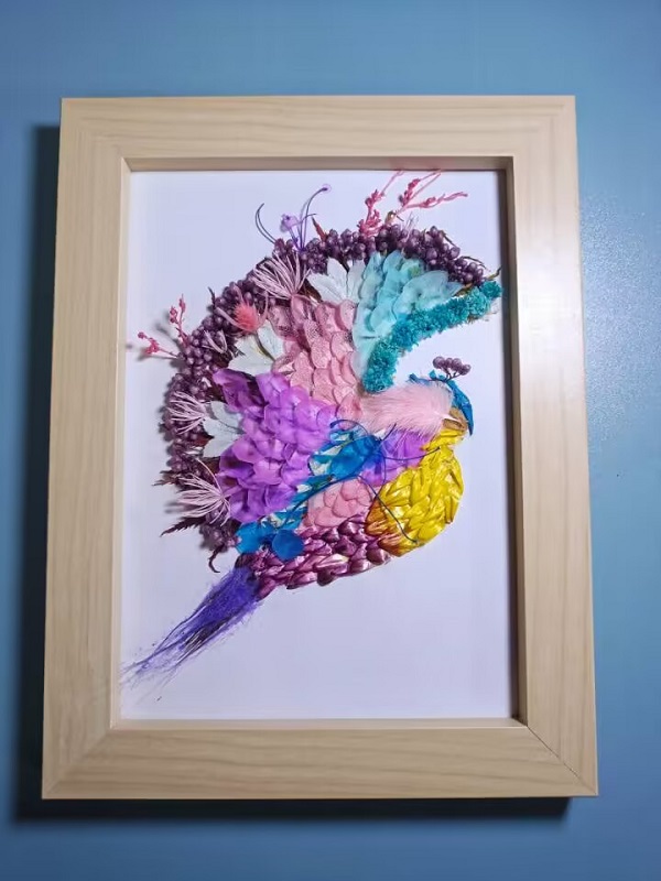 活动一经发布,同学们热情高涨,主办方共计收到了130余份精美的作品。同学们走进自然、探索自然,制作出自己心仪的标本。评选现场,2022级西式烹饪工艺一班王梦雪的作品吸引了评委们的目光,王梦雪表示,刚开始创作时迷茫无措过,但经过一番思索、查阅后,由自己采集的花瓣联想到了羽毛,便开始了后续的创作。精雕细刻出精品,千锤百炼铁成金,一瓣一瓣的花叶在王梦雪的手里变成了一只栩栩如生的翠鸟。她说:“这次活动让我对标本的制作有了一定的了解,同时我也感受到了大自然的魅力,能够让凋落的花瓣再次‘重生’,我感到十分有意义!”这次经历让王梦雪发现美的事物随处可见,即使是一片叶子、一片花瓣。只要用心观察,总会发现生活中随处可见的美。除了让人眼前一亮的“翠鸟”,还有各种奇思妙想。翩翩起舞的蝴蝶、纵横驰骋的骏马、泛起阵阵金色浪花的油菜田、还有疏影横斜,一枝独秀的梅甚至难以看出都是用干花制作而成的。