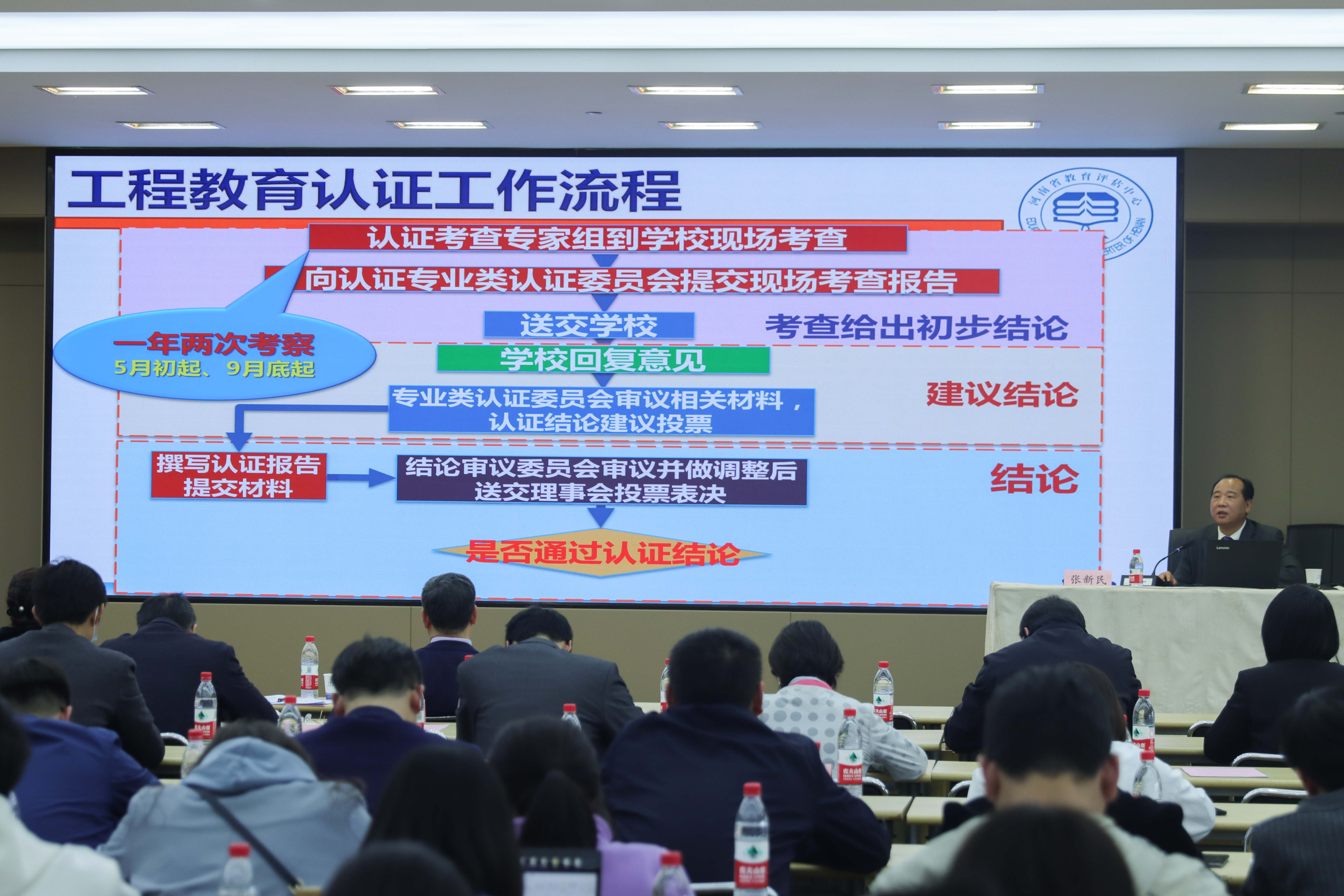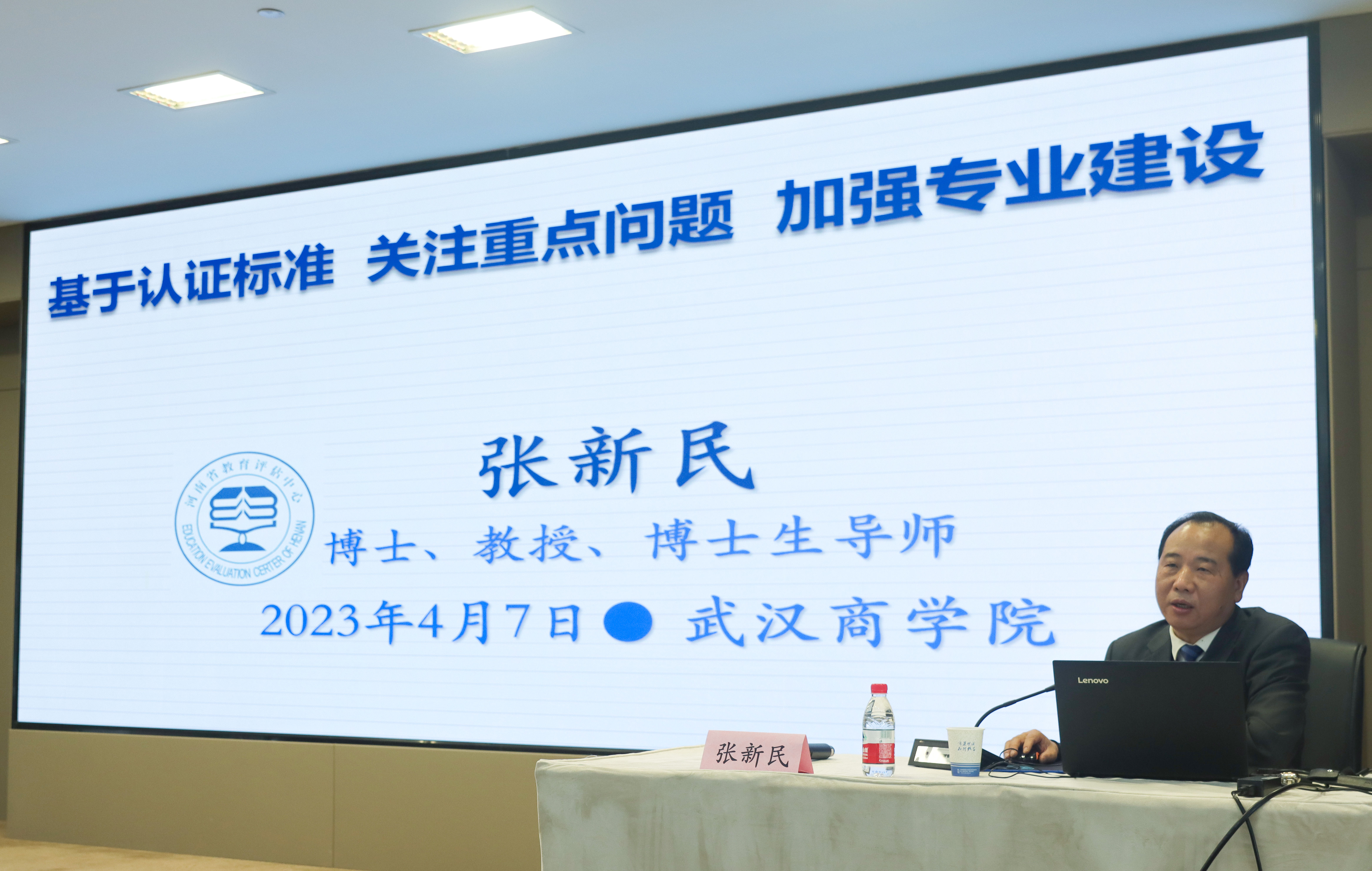 本网讯 4月7日下午,我校专业认证工作启动暨专家报告会在行政楼三楼多功能厅举行。河南省教育评估中心副主任张新民教授、湖北省教育科学研究(评估)院李友玉研究员,副校长刘佳霓、相关职能部门负责人、各二级学院院长、书记及教学院长及教师代表、发展规划处及教务处相关工作人员参加会议。会议由教务处罗双燕处长主持,此次会议宣告了我校专业认证工作拉开序幕。