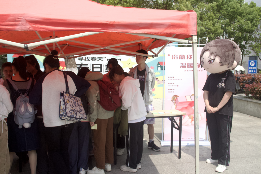 本网讯 4月10日中午,为帮助同学们走出情绪怪圈,坦然面对负面情绪,工商管理学院在北区食堂门口举办以“治愈我 温暖你”为主题的关爱心理健康活动。此次活动吸引了众多同学前来参加。
