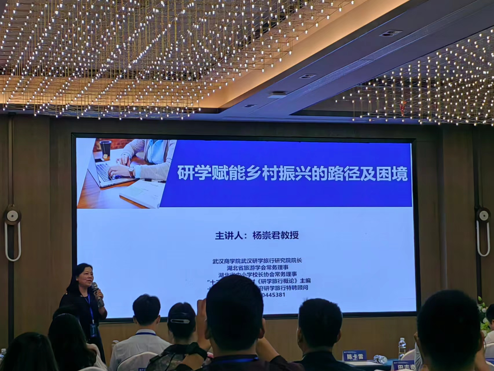 会上,杨崇君教授受聘为海南省青少年研学旅行协会特聘专家,并在“国家公园研学发展和研学营地(基地)建设”分论坛上作了题为《研学赋能乡村振兴的路径及困境》的报告。