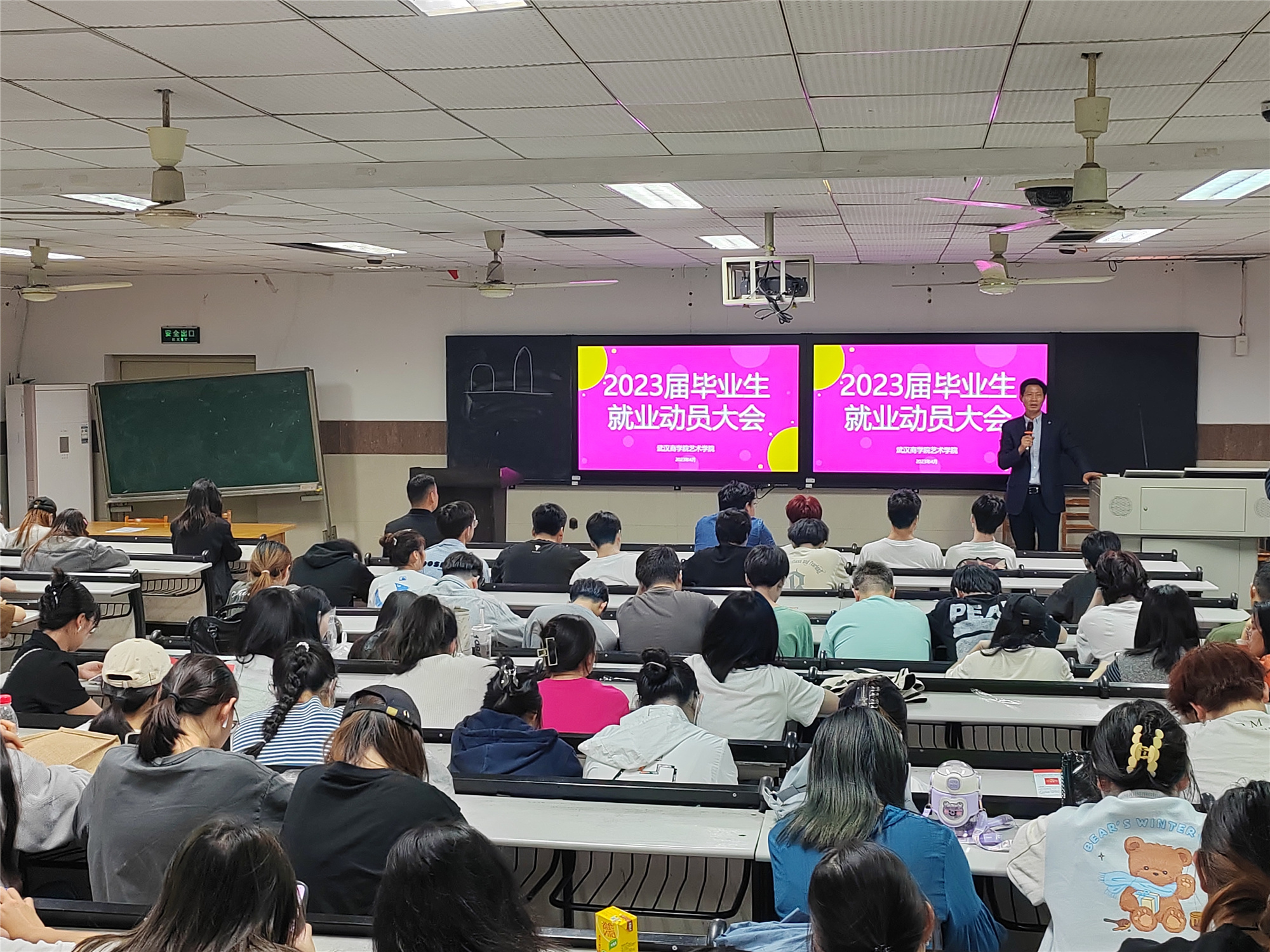 本网讯 4月12日,艺术学院在艺术类208教室召开2023届毕业生就业动员会暨春季招聘系列活动宣讲会。会议由学院学生科负责人张欢欢老师主持,学院领导班子、2023届毕业生辅导员出席会议,2023届毕业生参加会议。