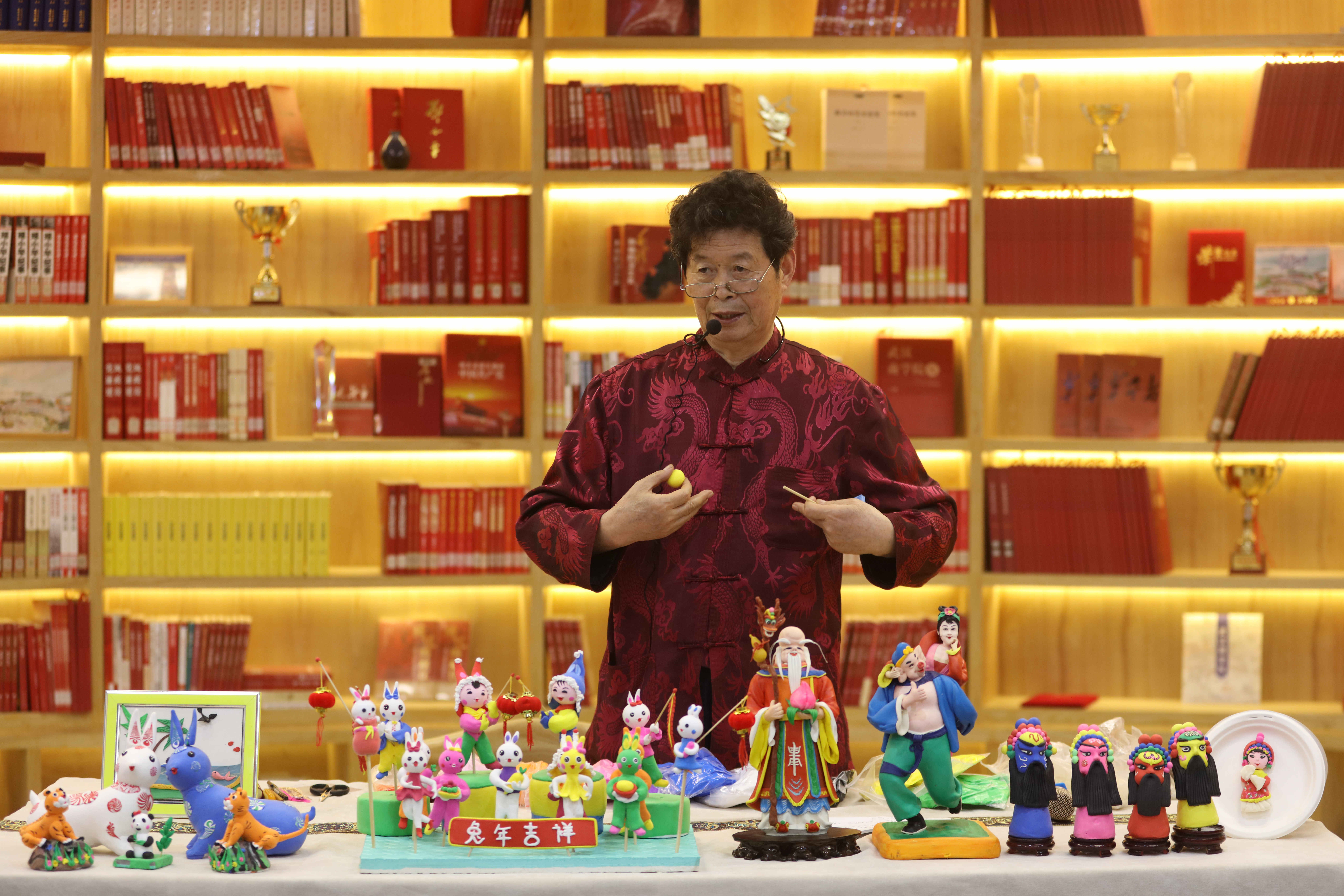 本网讯 4月14日晚上,我校第34期国学小课“江城八怪——栩栩如生‘手艺怪’”在校史馆正式开课。在湖北省雕花剪纸代表性传承人高志和老师的带领下,学生们现场学习制作面塑非物质文化遗产,感受民间造型艺术的生命力,传承民俗文化。