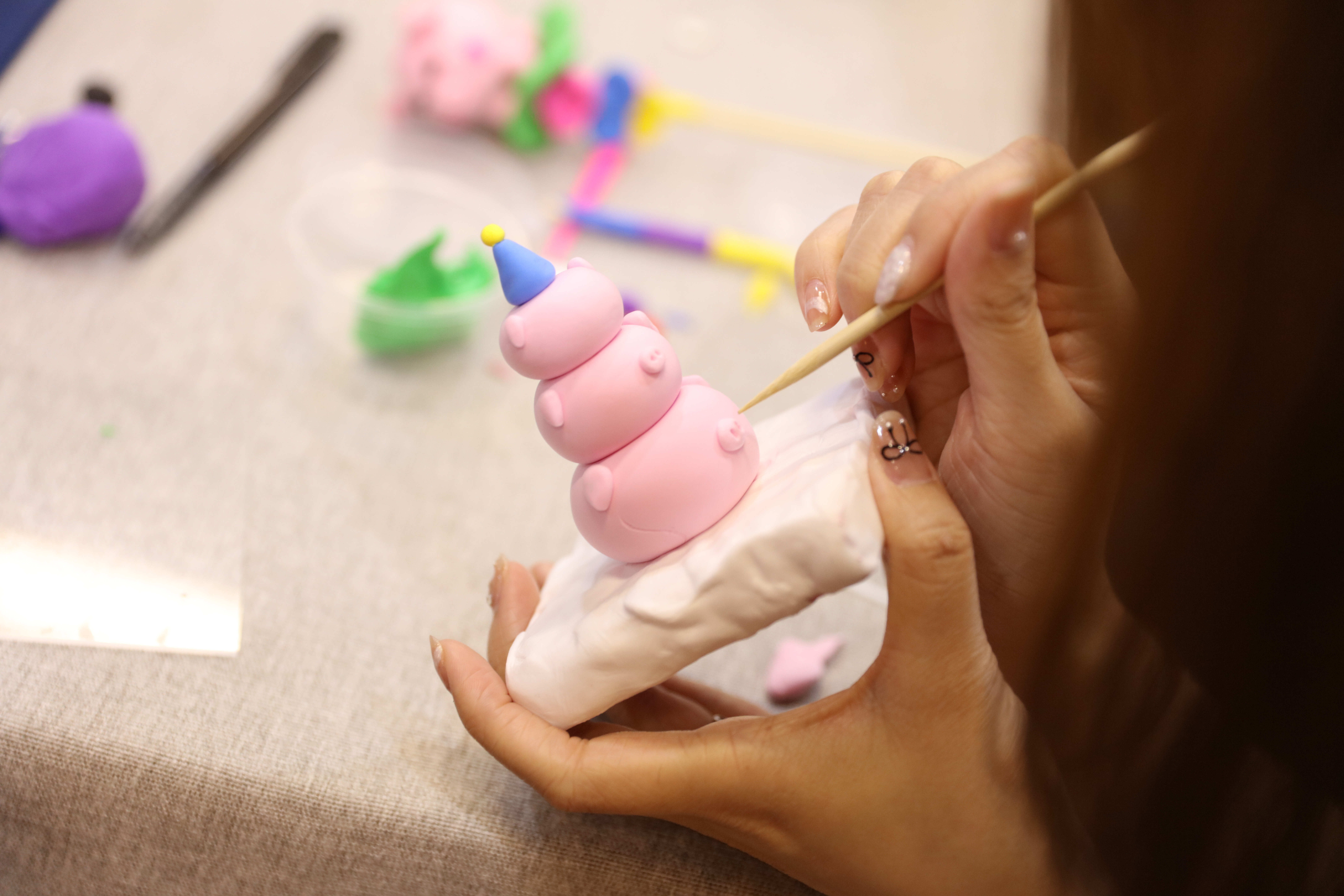 “以前的面塑艺人都是挑担提盒,走街串巷,简易的工具箱往面前一搁,就可以开始在街头做起面人来,摊子前面总是挤满了小孩,争相购买。现在,面塑技艺已经成为了我国非物质文化遗产,也成为了中国文化走向世界的名片之一。”高志和老师强调。在对面塑教学过程中,他很注重开发学生们的想象力与创造力“我希望同学们在课程上做出来的作品都有自己的想法自己的创意,与我的范例有所差异。”