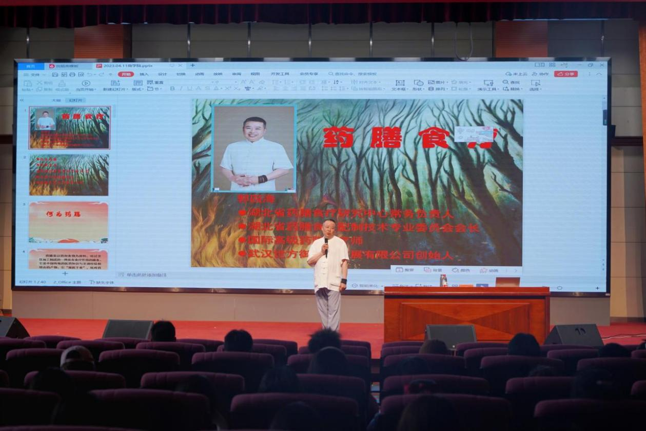 2023年4月11日中午,bwin必赢中国官网食品科技学院于图书馆报告厅举办了“致远讲坛”系列讲座之“药膳食疗”,本次活动邀请郭四海老师亲临现场演讲,我校部分学生到场学习。