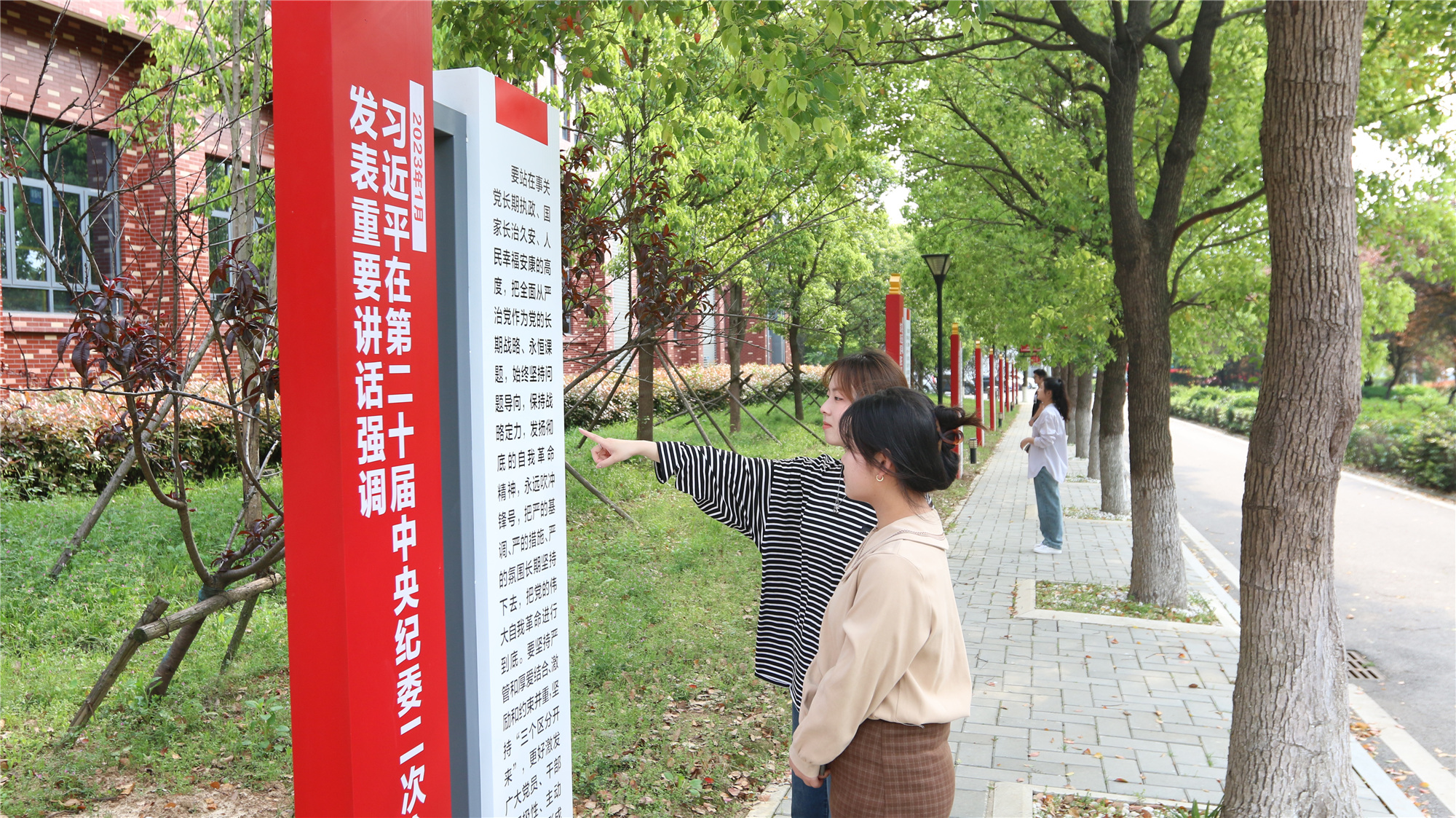 营造文化氛围,厚植廉政文化基础。除了新增的“廉政路”,我校也积极开展高质量党风廉政建设,诸如举行原创廉政作品展,召开党风廉政专题悦读分享会、党风廉政警示大会、党风廉政专题讲课,举办主题党日、团日活动,开展廉洁教育社会实践活动,将廉洁教育融入思政课堂,引导大学生树立反腐倡廉意识,推动形成以清为美、以廉为荣的廉洁校园文化氛围。