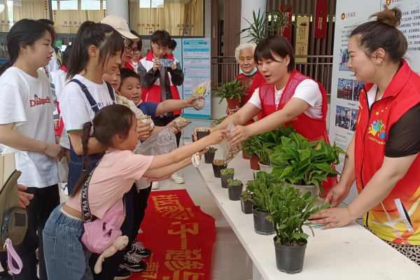 随后志愿者们与家长孩子一同参与“烟头换绿植”的环保活动,家长与孩子们在前面带头捡烟头,志愿者们在一旁协同。活动最后,孩子们将捡来的烟头与大集街道社会工作服务站负责人李莎莎兑换漂亮的绿植,并与志愿者们合影留恋。