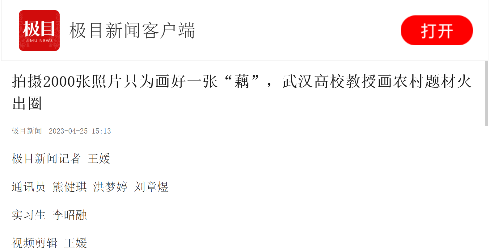为了寻找广阔的创作题库,55岁的周祖银仍经常骑着电动车去武汉附近的农村取材,将画作的题材放在广袤的乡村土地上,几十年采集素材的旅程当中,周祖银的足迹几乎覆盖了整个武汉。“农村是最能代表我国时代发展的地方,那里涵盖着最丰富的希望,我对此寄予了丰富的感情。”周祖银说,从小生活在汉阳的他见证了武汉的城市巨变,每次踏上农村的土地,看到农民眼中无穷的幸福和希望,他都能有强烈共鸣。