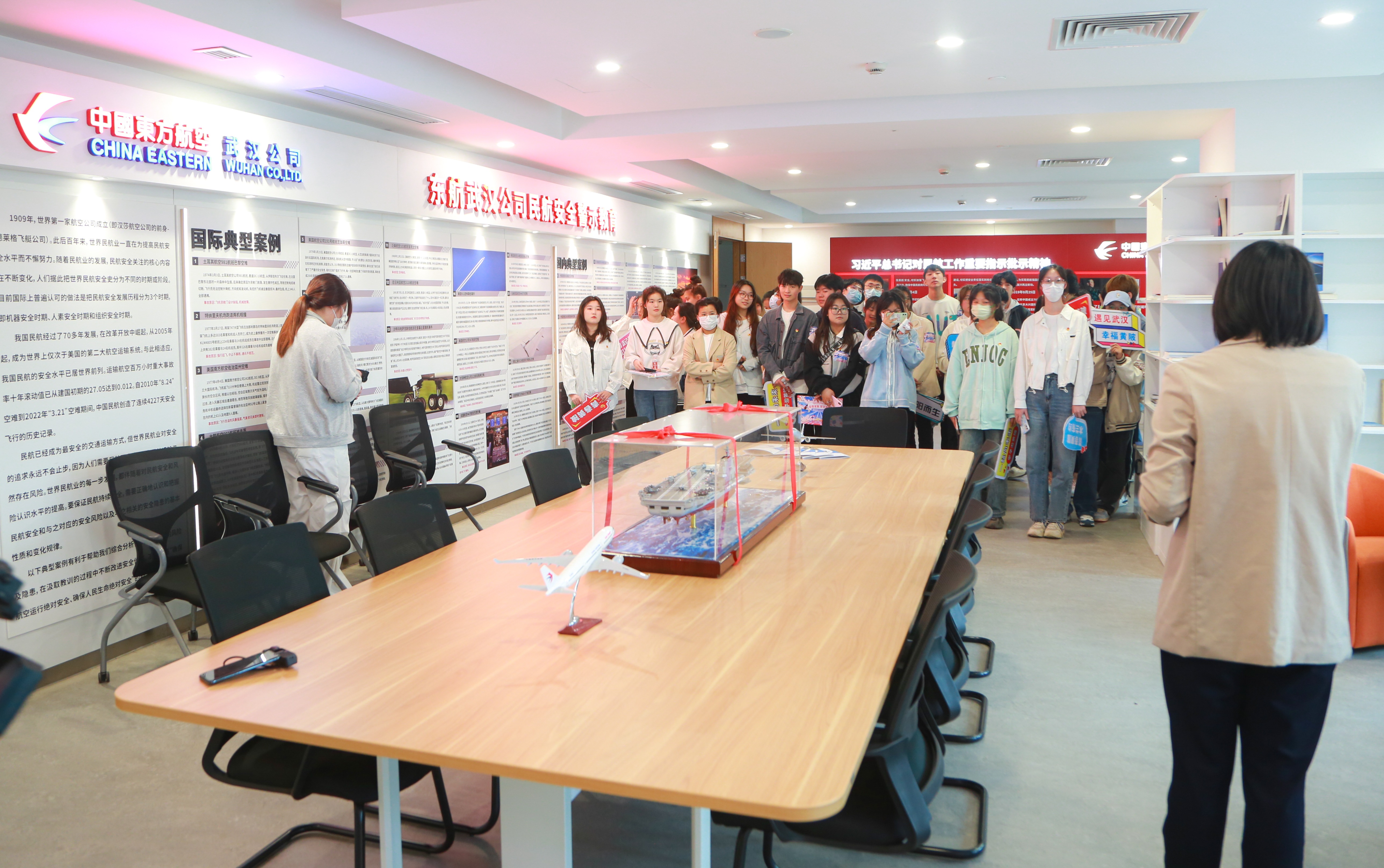 在中国东方航空武汉公司团委负责人的带领下,大家一行参观了中国东航武汉公司发展文化馆、民航安全警示教育室、五星机长风采墙、安全文化长廊、郭宾雪空中服务创新工作室、楚天书屋、蓝天之家等思想文化阵地,向大家展现了东航先进的企业文化思想。东航武汉公司一直致力于打造立足中部、辐射全国、依托大东航枢纽网络连通世界的一流航空公司,不仅在参加活动的学子心中为东航树立了勇于变革创新的企业形象,特别是让航空服务专业的学生更加近距离接触、了解、认识专业领域相关知识,更让大家深刻感受到了东航的盛情。