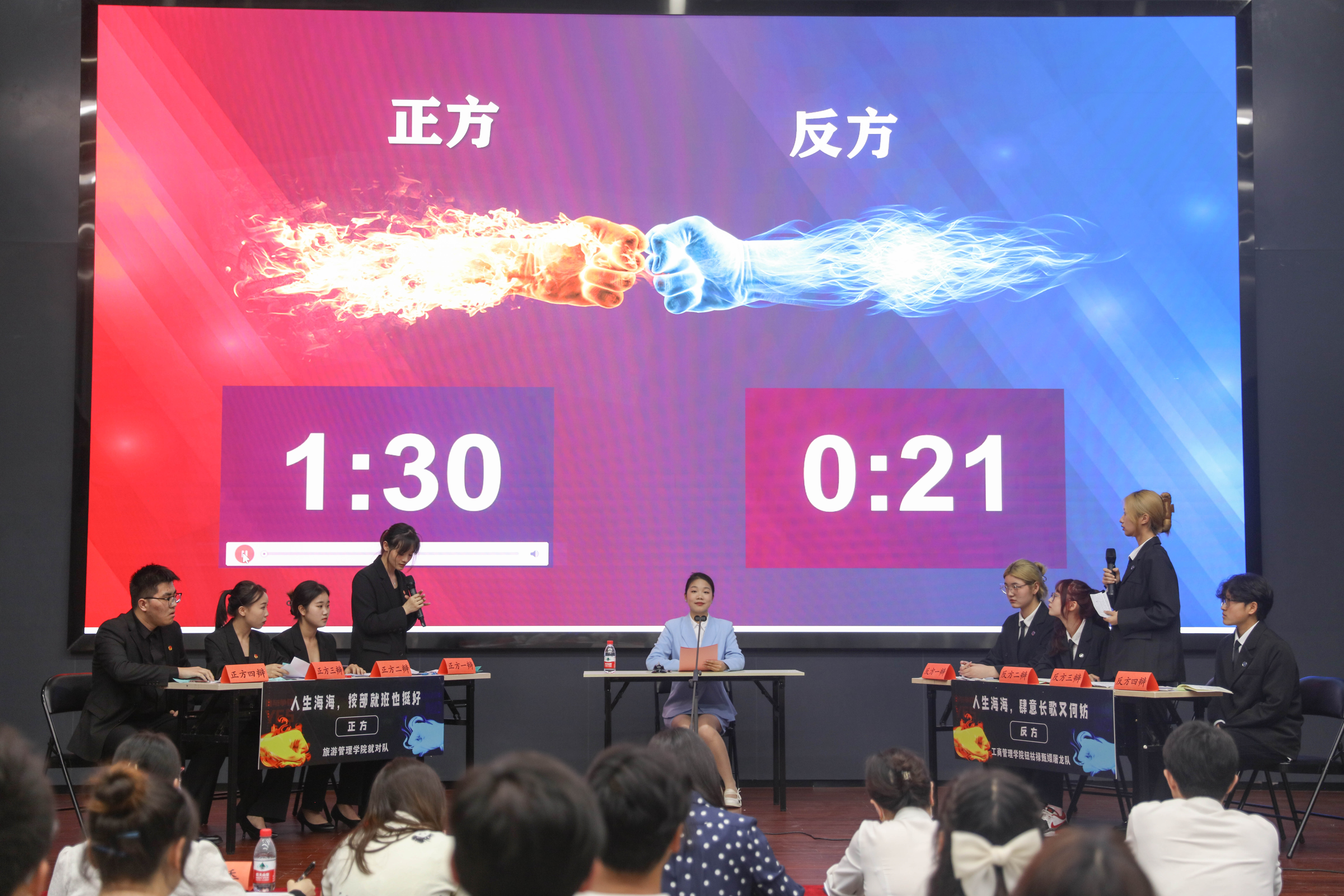 此次辩论赛不仅提供了一个展示学生才华和思辨能力的平台,更促使观众和参赛选手们对人生的价值观、生活态度和成长方式进行了深入的思考,带来了一场思想的盛宴的同时,锻炼了当代大学生独特的思维和勇于挑战传统的精神。