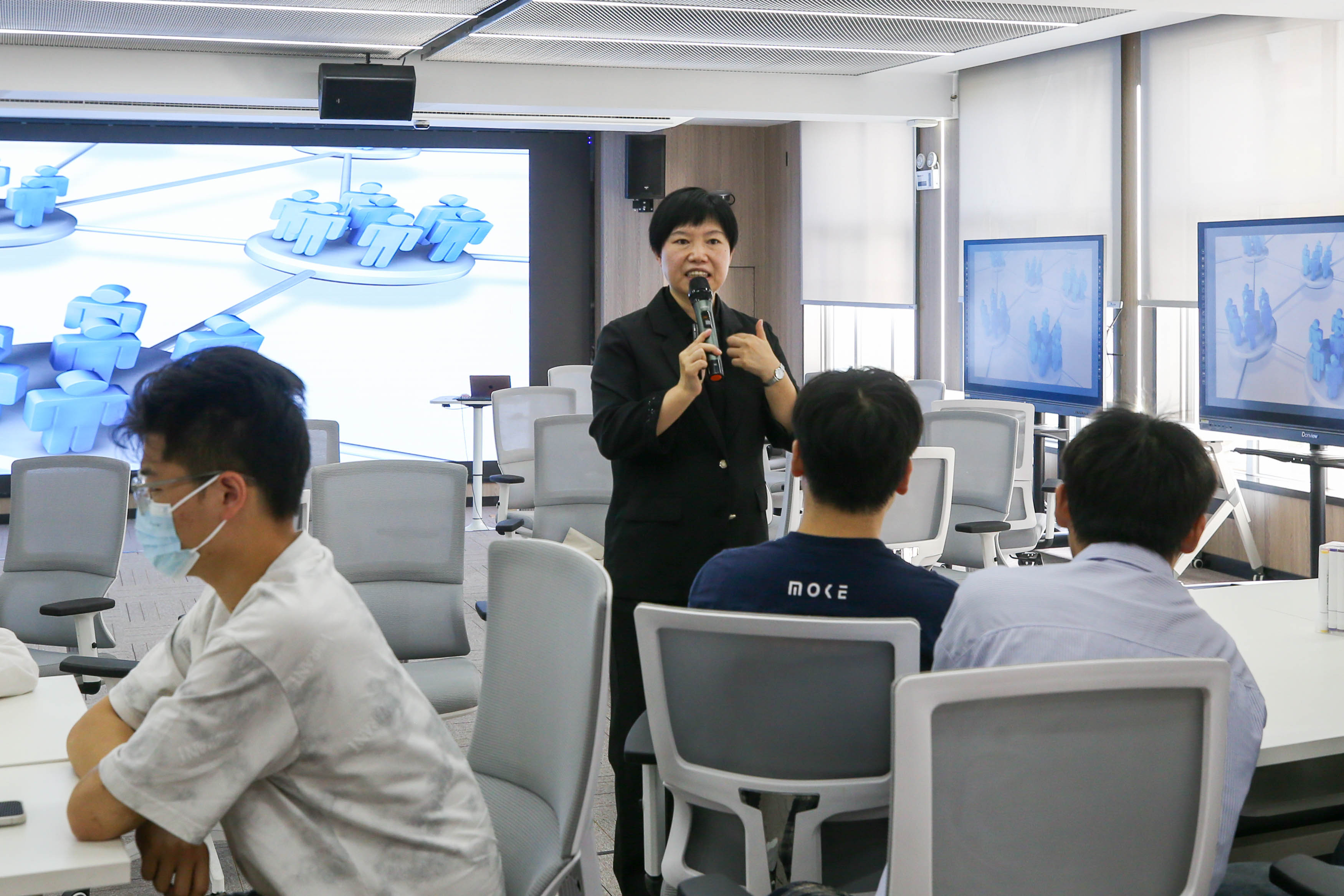 小组活动后,徐科讲师进行求职问题识别的讲解,由依赖、自负、焦虑等求职现象引出求职中的矛盾心理。接着,她用综艺节目《初入职场的我们》中的一段求职面试视频揭示求职者的面试问题。指出就业心理问题,并相对应提出“注意转移法”、“适度宣泄法”等心理调适方法。最后,徐科讲师祝福同学们“从2023再出发,做出自己的努力,踏上新征程,走出自己想走的道路!”