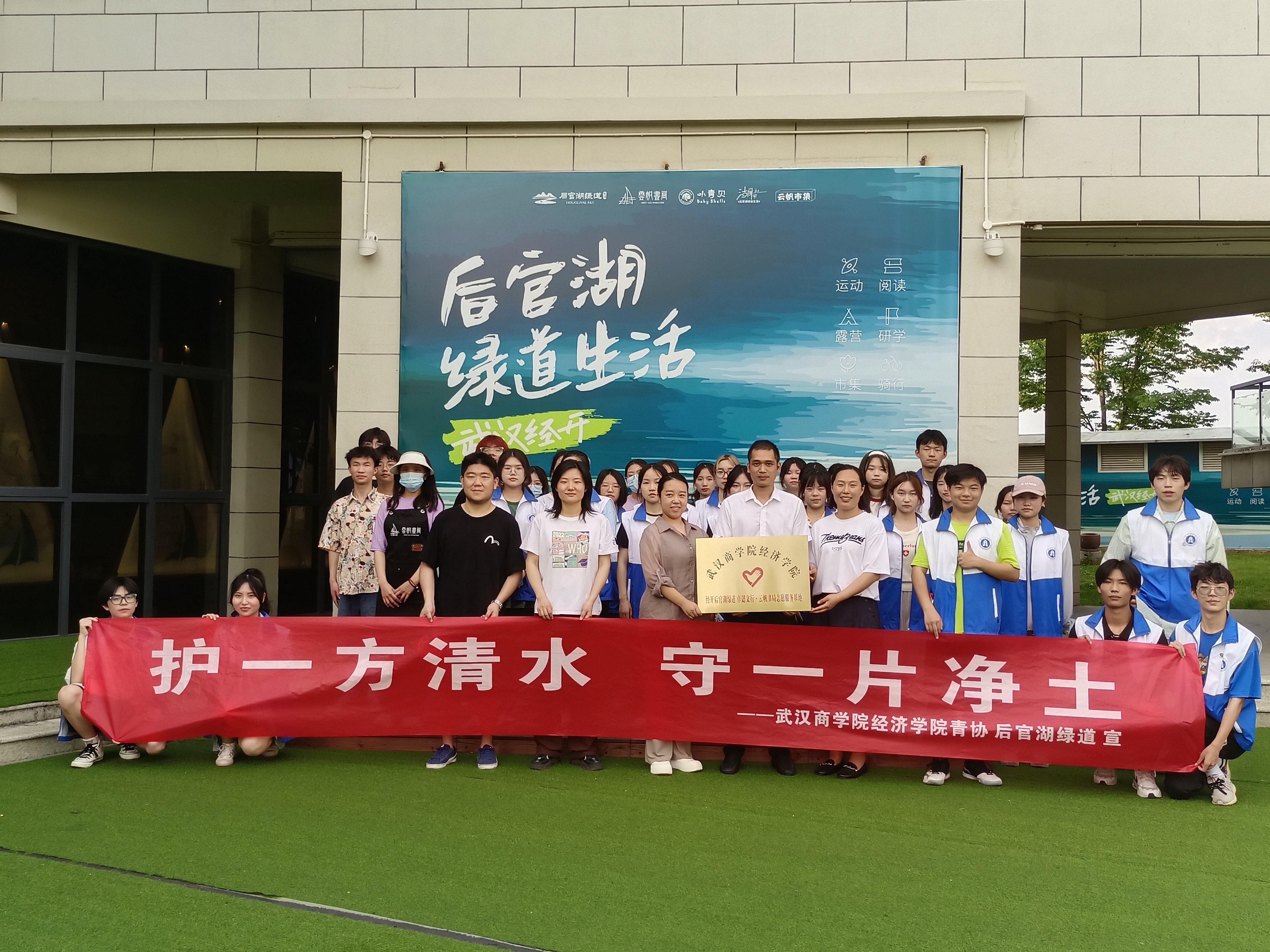 本网讯 5月27日下午,由经济学院青年志愿者协会主办的“绿道大清洁 护绿我先行”主题活动在后官湖展开。此次活动由辅导员王甜甜老师带队,出席本次活动的有后官湖绿道负责人李宜芳以及武汉车都资产经营有限公司的副总经理黄寿辉。