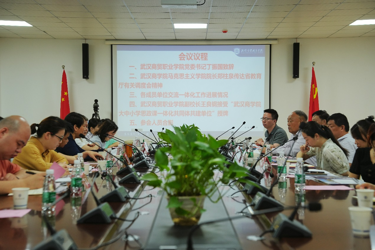 5月31日,由我校牵头的大中小学思政课一体化共同体第二次工作会议在成员单位武汉商贸职业学院召开,来自湖北国土资源职业学院、黄陂区教育局教学研究室、武汉市黄陂区第七高级中学等成员单位负责同志、思政课教师代表聚集一堂,共商大中小学思政课一体化共同体建设,我校马克思主义学院8名团队成员参加。武汉商贸职业学院党委书记丁振国、副校长王良刚到会指导。