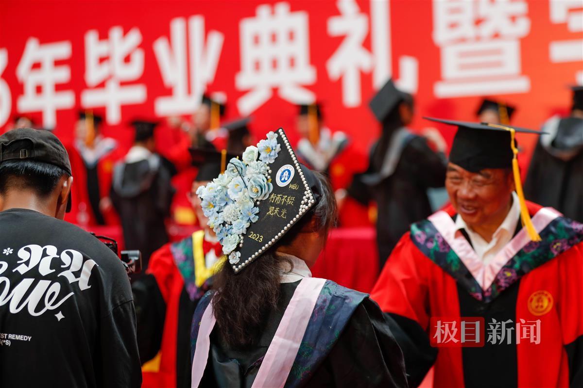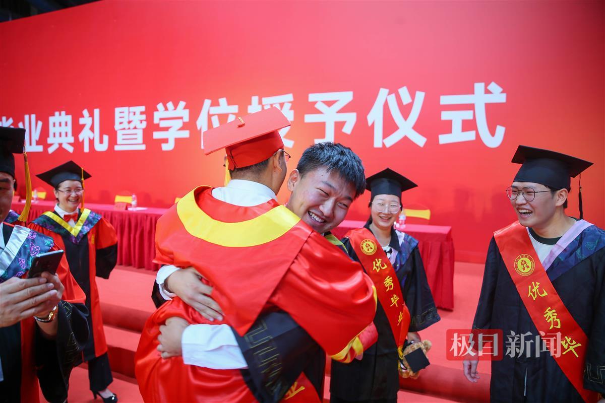 “我想感谢我的辅导员张韵,经常联系问我考研进度,虽然第一次没考上,在她的鼓励下、引导下,我成功考上了研究生。”在拨穗环节,陆毅紧紧地抱住了校长转了几个大圈,用这种方式表达自己对学校的喜爱和不舍。