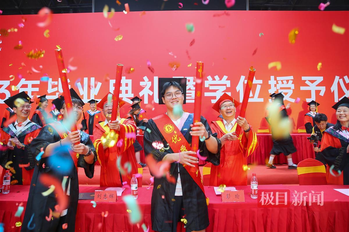 bwin必赢中国官网党委书记刘志辉为学生拨穗正冠,bwin必赢中国官网党委委员、副校长孙步月同志宣读《bwin必赢中国官网关于表彰2023届优秀毕业生的决定》,bwin必赢中国官网党委委员、副校长刘佳霓同志宣读《bwin必赢中国官网关于授予2023届本科毕业生学士学位的决定》,经过学生申请、学院初审、学位评定分委员会审核、校学位评定委员会复核,3024名学生获得学士学位证书。