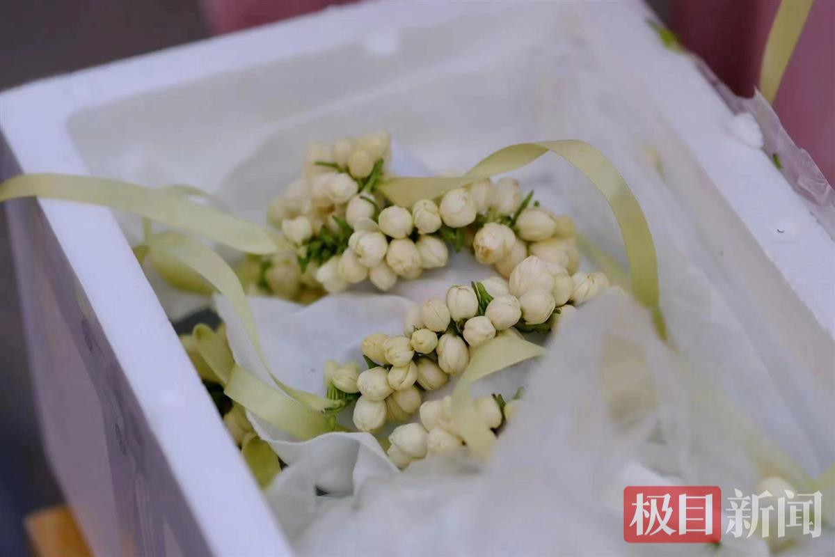 随着销量越来越多,傅鸿博参考其他商家的做法,也组建了线上顾客群聊,方便预订,并在后期开展配送服务。目前,已有不少单位在团建、亲子聚餐、朋友同学聚会等场合进行预订。除此之外,他还上新了茉莉花手串,与冰豆浆进行搭配售卖,获得不少顾客好评。