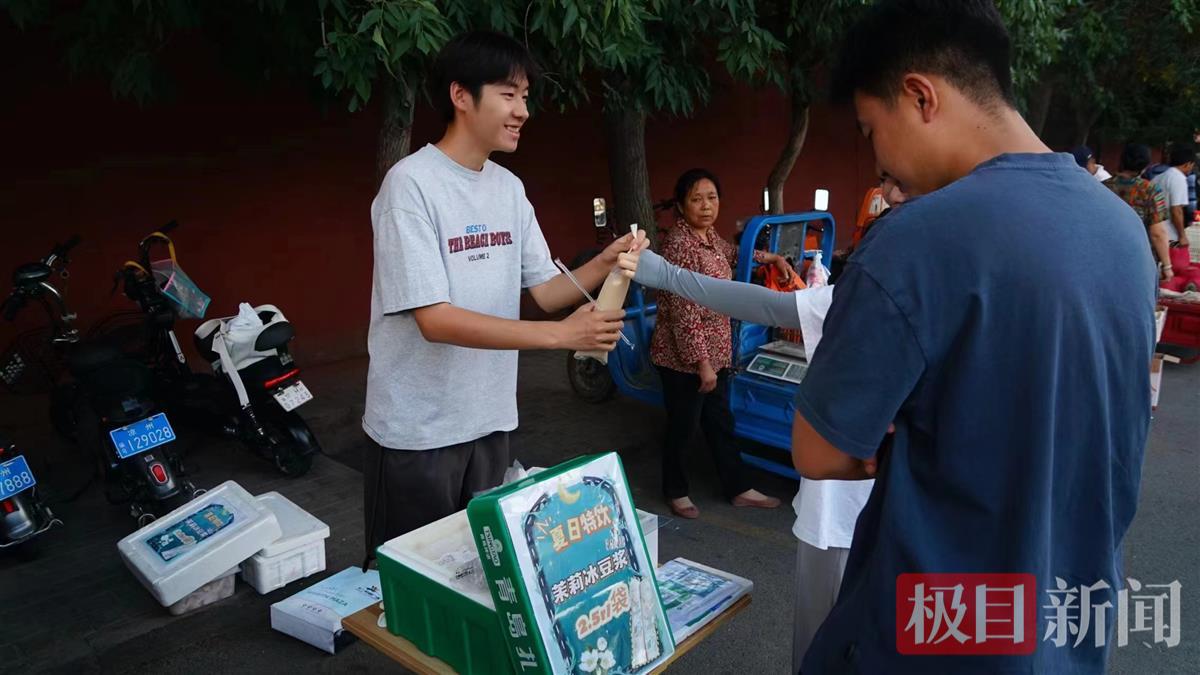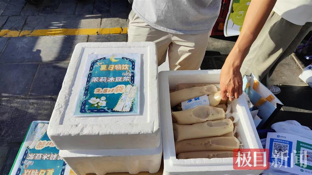 正值酷暑时节,傅鸿博的茉莉冰豆浆小摊一下子火起来,五点半就已经有居民在摊位前排队等待。“现在每天出摊没一会儿就能卖完,最多的时候一天卖了将近三百袋,有的顾客来晚了只能预定第二天的。”傅鸿博说。
