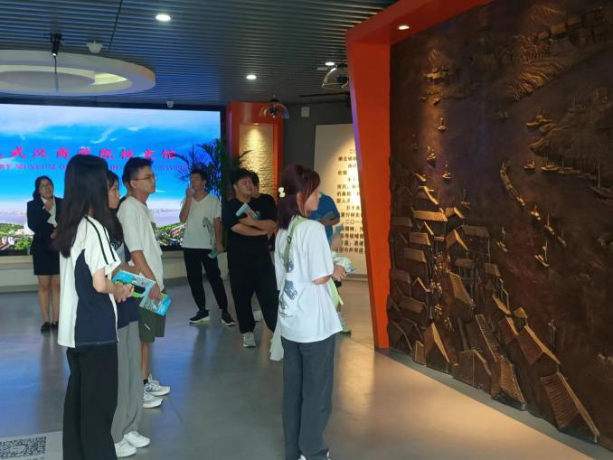 在踏进楚菜博物馆之后,同学们无一不被馆内厚重的历史氛围所感染,首先映入眼帘的大型浮雕——《源远流长》,就描述了从屈原的《大招》至现代楚菜的演变过程,一页页文字、一篇篇故事和一个个老物件正跨越历史的长河展现出武商院与楚菜同呼吸共发展的伟大成就和优异成果。