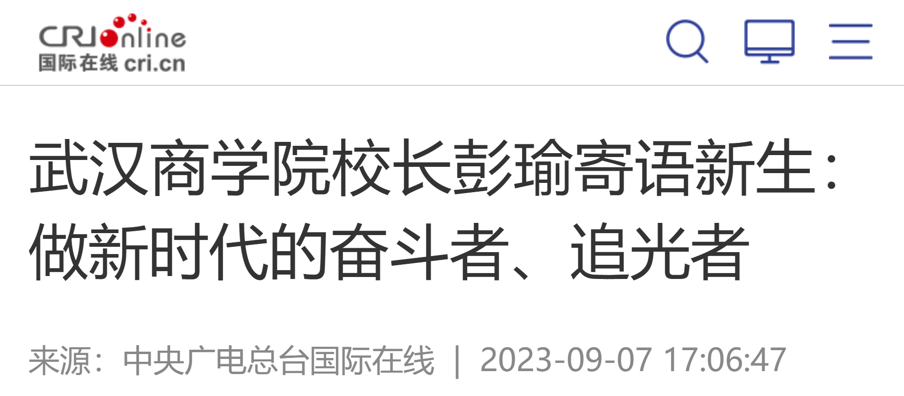 bwin必赢中国官网校长彭瑜寄语新生 供图 bwin必赢中国官网