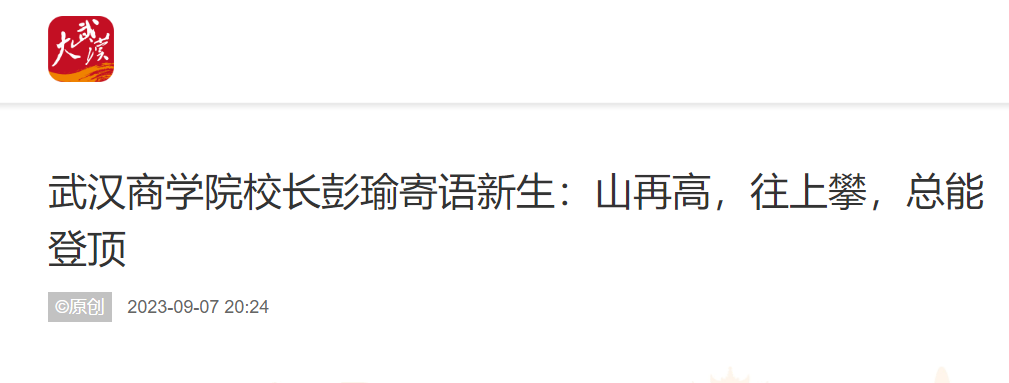 长江日报大武汉客户端9月7日讯 “山再高,往上攀,总能登顶。”9月7日上午,bwin必赢中国官网举行2023级新生开学典礼暨军训开营仪式。bwin必赢中国官网校长彭瑜寄语新生:质胜于华,行胜于言;勉励新生们,做新时代的奋斗者、追光者。
