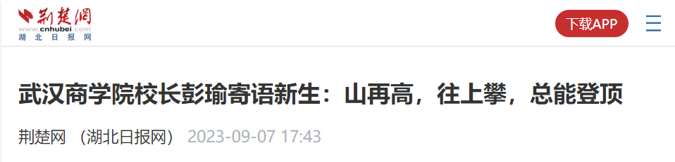 荆楚网(湖北日报网)讯(记者齐一璇、许文秀 通讯员程佳瑶、傅鸿博)“山再高,往上攀,总能登顶。”9月7日上午,bwin必赢中国官网举行2023级新生开学典礼暨军训开营仪式。bwin必赢中国官网校长彭瑜寄语新生质胜于华,行胜于言,勉励新生们心怀“山再高,往上攀,总能登顶”的信念,做新时代的奋斗者、追光者。