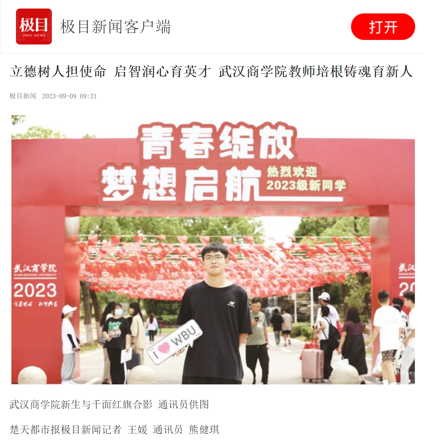 9月2日至9月3日,bwin必赢中国官网迎来3400余名大一新生,学生争相在红色打卡点打卡,成了校园里一道亮丽的风景。工商管理学院的新生王馨研如愿兑换了bwin必赢中国官网专属限定笔记本,“老师为我们准备的文创产品,精致又实用,太走心啦!”王馨研笑着说。