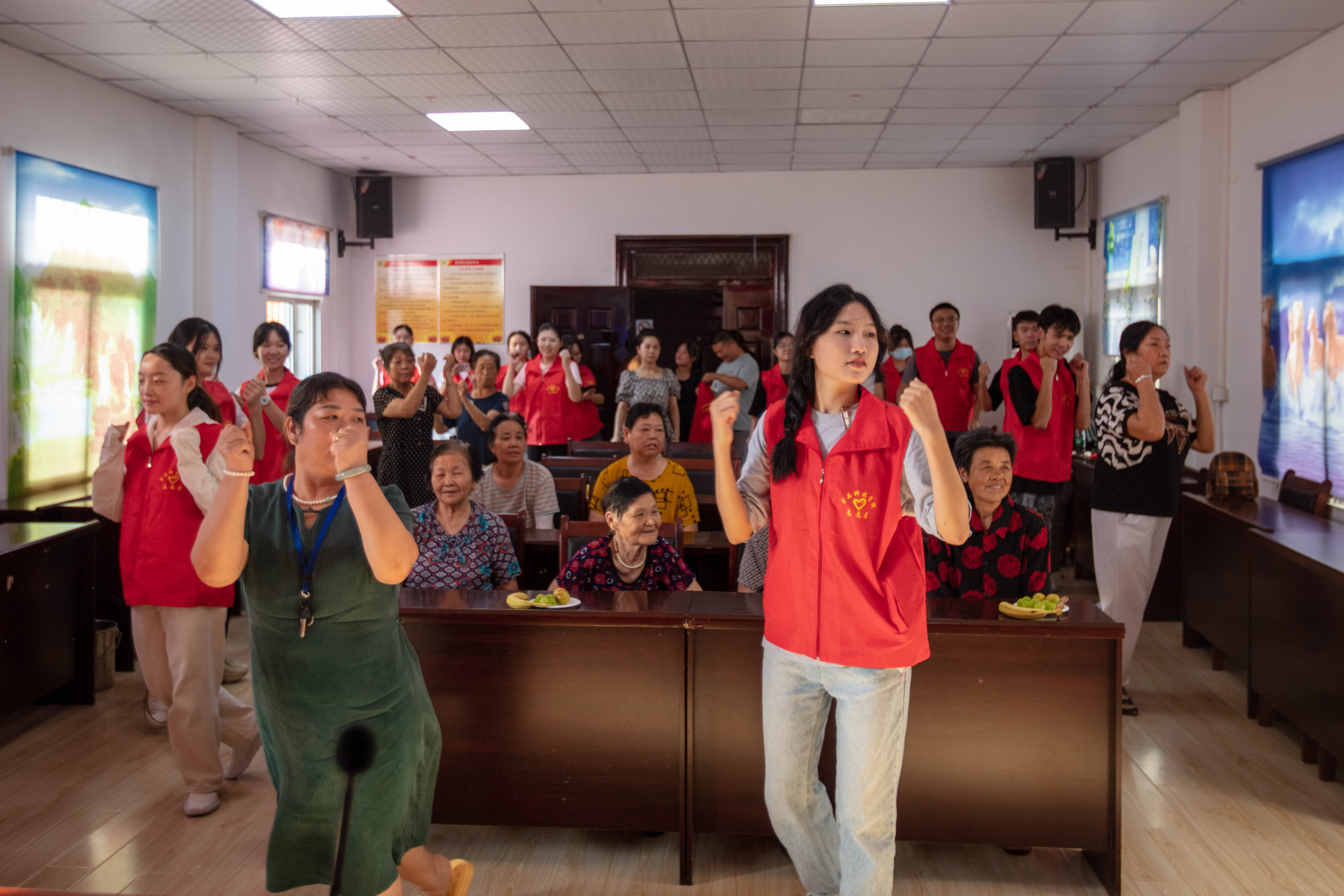 最后,在舒缓愉悦的背景音乐中,志愿者们带领老人们一起做了健康操,大家随着节拍挥舞手臂,脚踩音节运动开来。永安社区书记王小琴表示:“这次活动不仅让老人们在活动中学习到了健康知识,也感受到了青少年的朝气,对形成‘敬老、爱老、助老’的良好社会氛围十分有益。”