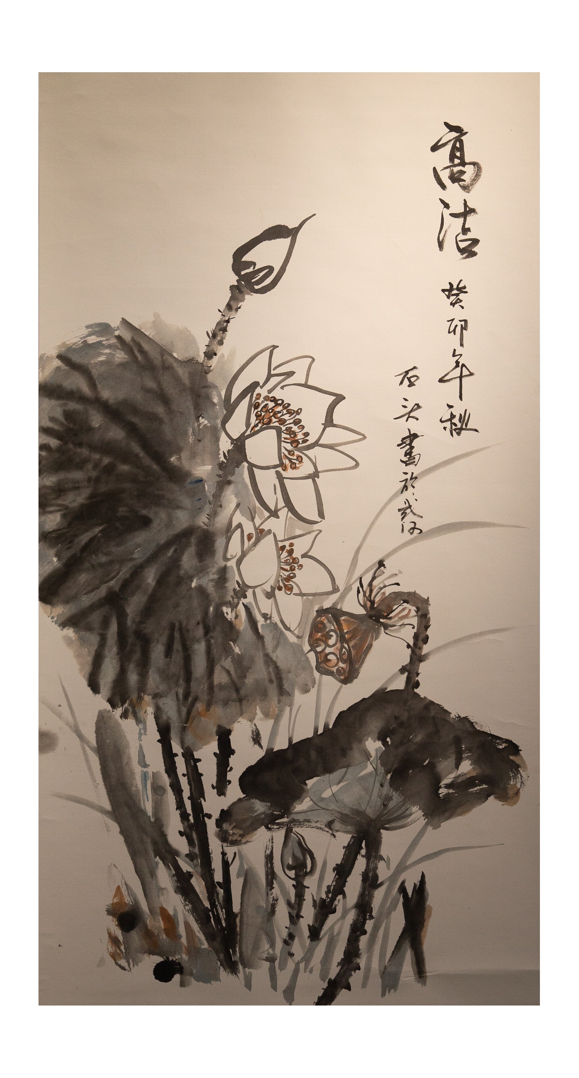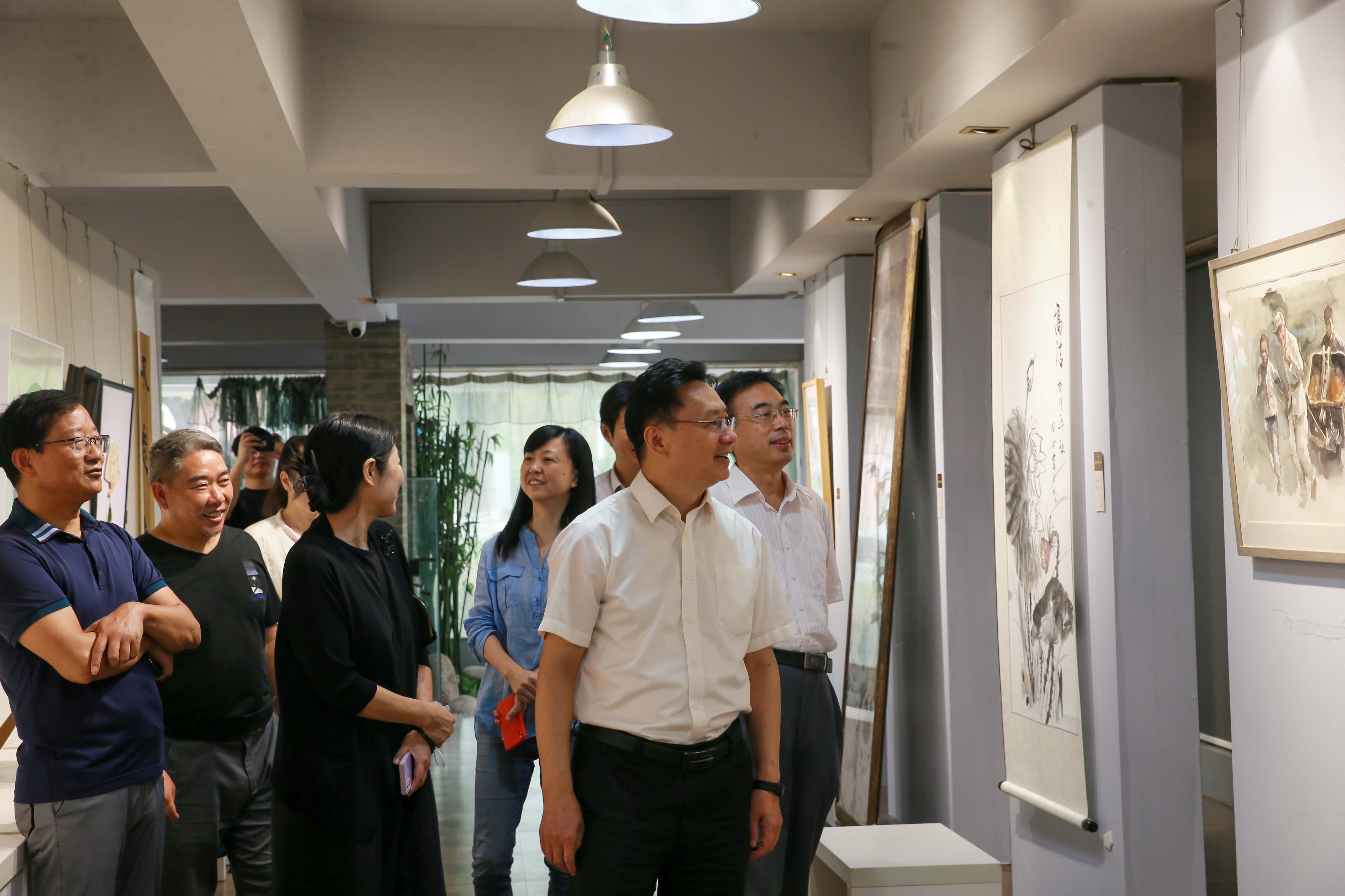此次展出许多作品都运用了莲的元素:国风水墨作品《高洁图》、非遗剪纸作品《莲·青花》、油画作品《睡“廉”》、摄影作品《咏莲》等。这些作品将栩栩如生的莲花赋予“廉洁”之意,意在传达要如莲一般“出淤泥而不染,濯清涟而不妖”。“此次作品的创作不论是何种形式,写意国画,色彩油画,还是剪纸作品,都是紧扣廉政主题,体现“源洁流清”之意。”艺术学院教师邢向阳向众人介绍展出作品,校领导对于作品的主题表达和艺术观赏性表示肯定。