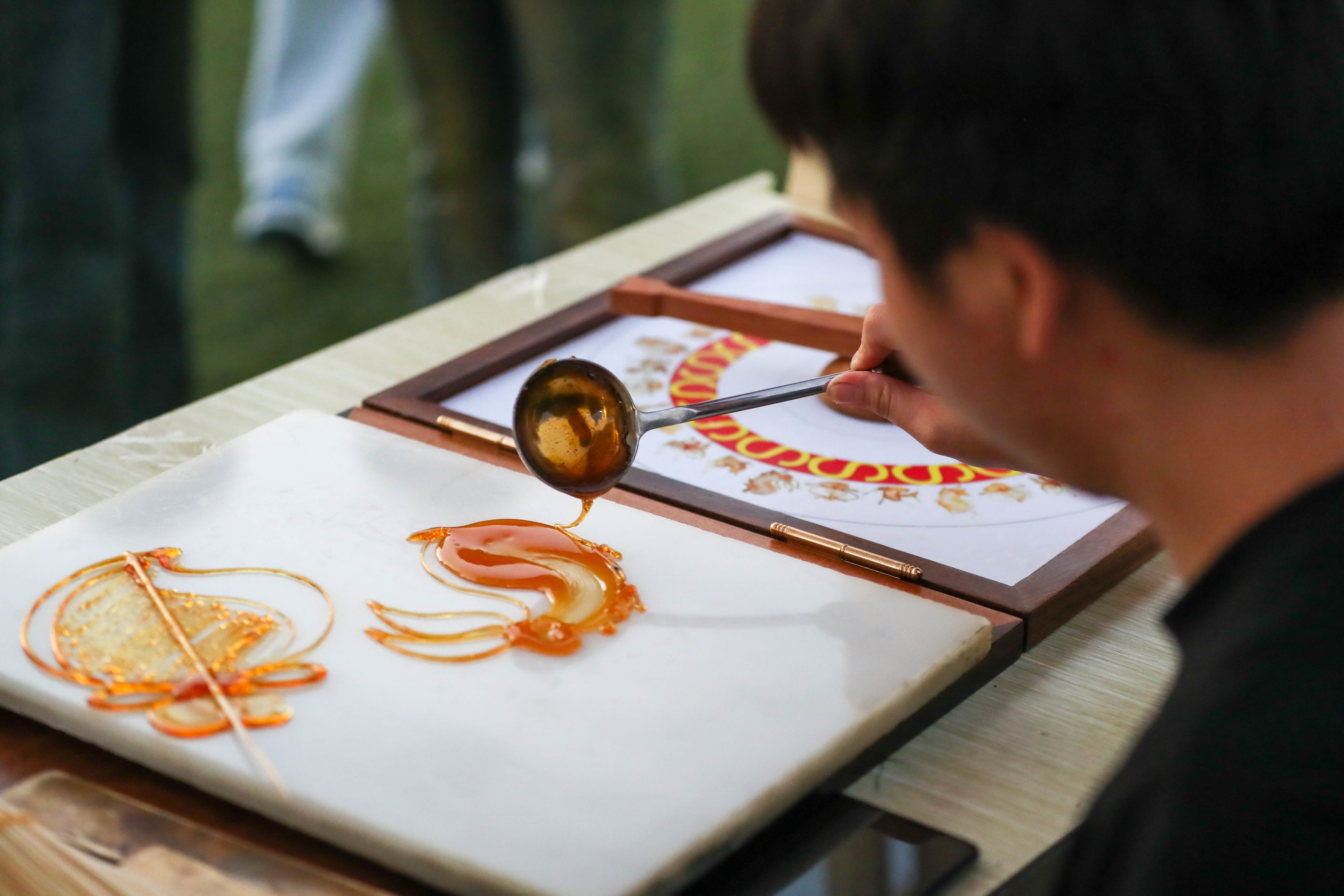 在非遗造物手工坊中,各个摊位展示我国优秀传统文化与非物质文化遗产。无论是制作精美窗花的剪纸艺术协会,还是身着汉服向大众宣扬优秀传统文化的拾韵汉文化协会,都展现了中华民族传统文化的当代价值。国际教育学院汽车制造与试验技术(中外合办)专业的三位大一新生李振军、褚世康和王兴为到非遗文化糖画摊前围观糖人制作的过程。褚世康兴致盎然地说道:“社团嘉年华让我看到许多优秀的非遗工作者各显神通,看到我们中华优秀传统文化的美好!”在抽奖处,2023级工商管理学院的会计专业学生杨桐拿着集满盖章的集章卡十分开心:“通过社团互动,让我认识了许多有意思的社团,感受到学校社团的创新活力!”