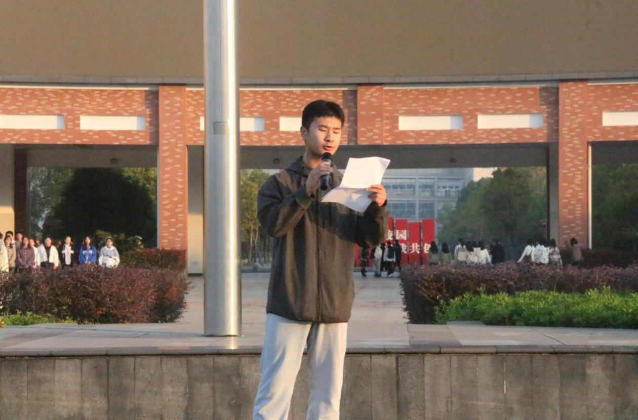 早上七点,朝阳东升,伴随着庄重的国歌声,升旗仪式正式开始。国旗手们迈着强健的步伐缓缓走向升旗台。国歌奏响,全场肃穆,鲜艳的五星红旗在空中迎风飘扬。而后,由学生代表毛飞同学进行国旗下演讲,演讲主题紧紧围绕“新时代,新青年,新作为”展开,回顾伟大建党精神,以此激励我们坚定理想信念,担当时代复兴大任,为实现中华民族的伟大复兴而不断努力奋进。最后,由杨鑫源同学为这次升旗仪式做思想总结,升旗仪式在掌声中圆满结束。