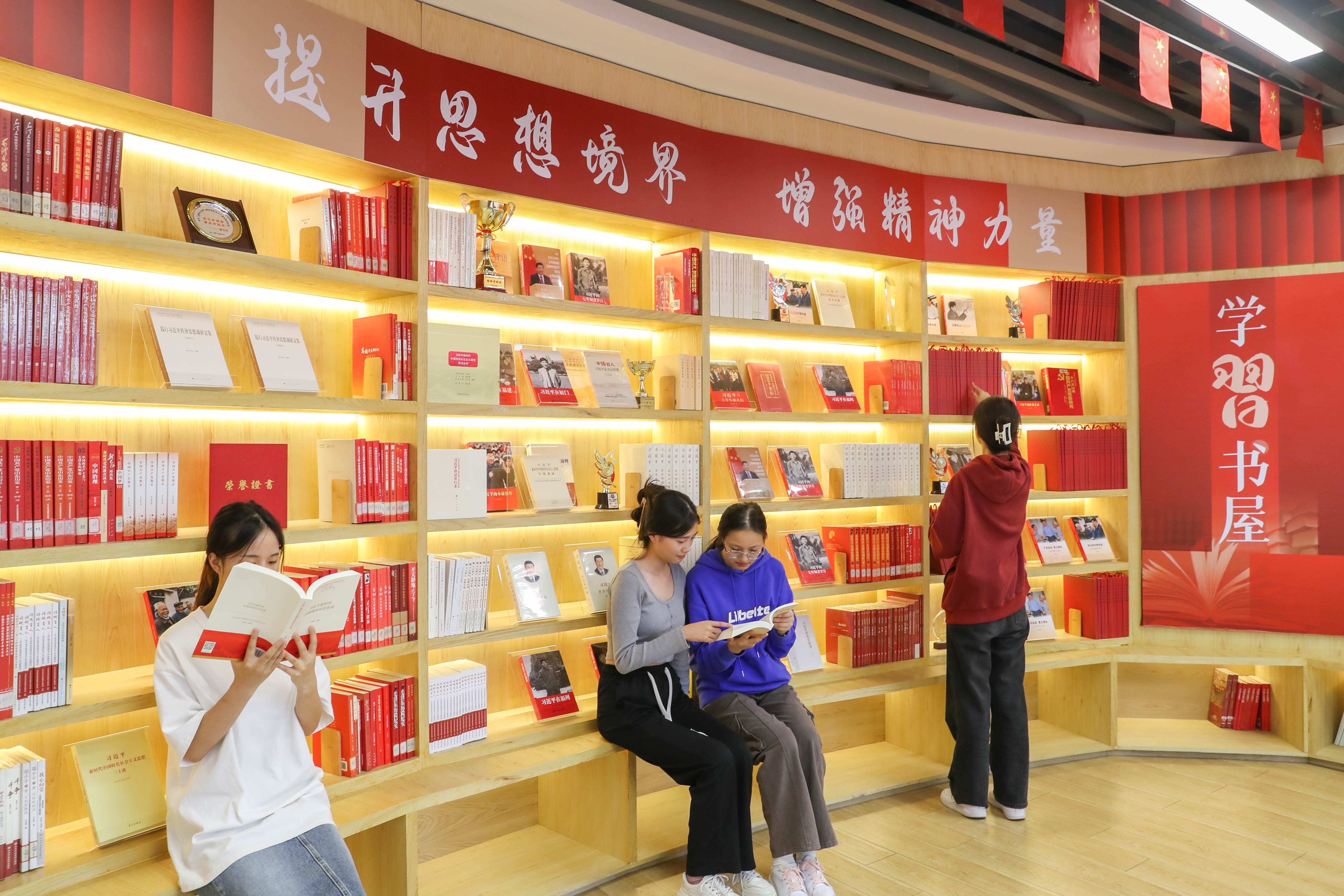 近日,由党委宣传部在校史馆打造的特色校园书香文化项目“学习书屋”正式完成。“这里的书故事性强、品质高还与习近平总书记的经历有关,参观完在这里休息,看会书刚好缓解了参观后的疲劳,很舒服。”来自2021级西式烹饪工艺专业的樊伊婕同学说完继续翻阅书籍,沉浸在红色书香之中。