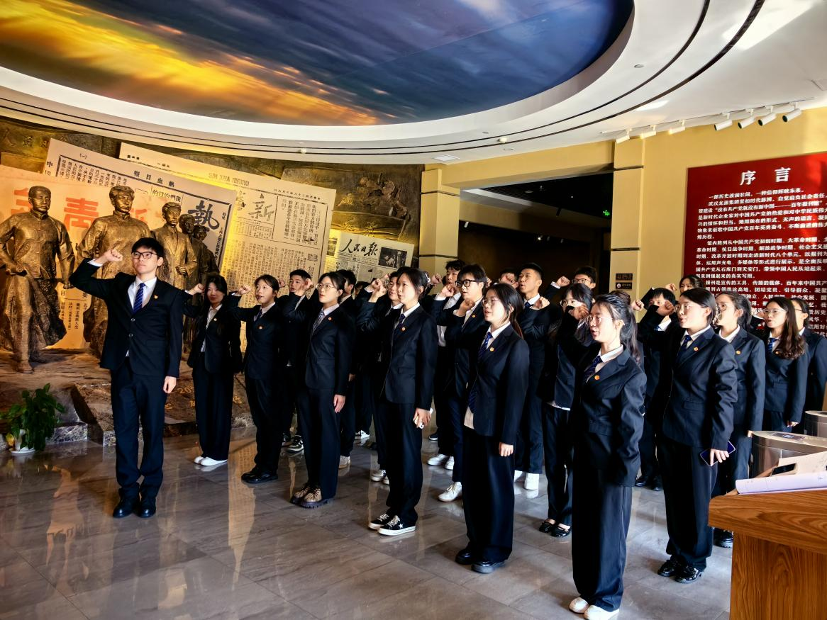 为帮助同学们学习党史,回望党的百年历程,10月23日上午,张石副校长与马克思主义学院刘宗劲副院长带领我校“青马工程”骨干培训班的学员们一同前往武汉龙源“没有共产党就没有新中国——百年报刊展”红色报刊博物馆,上了一堂生动的思政课。