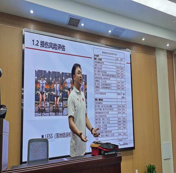 接下来运动康复系的张思卓老师结合他在国家队担任队医的实践经验做了《运动损伤防护策略》的讲座,张思卓采用理论讲授加实际操作的方式对我校运动队教练员及保障人员如何进行科学、安全、有效的运动损伤防护与治疗提出了针对性和指导性意见。