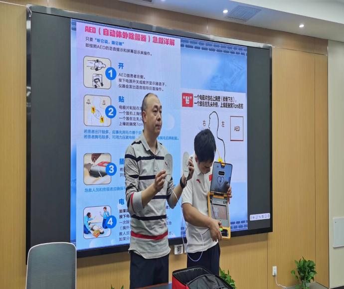 会上,很多老师亲身体验了利用心肺复苏模拟人模型进行心肺复苏模拟演练,了解和熟悉了心肺复苏以及AED的使用方法。李要南院长和其它老师均表示本次培训十分有意义,不仅提升了我校运动队教练员及保障人员对突发伤病及疾病的应急和施救能力,同时为各运动队训练竞赛的安全和创建平安校园保驾护航。