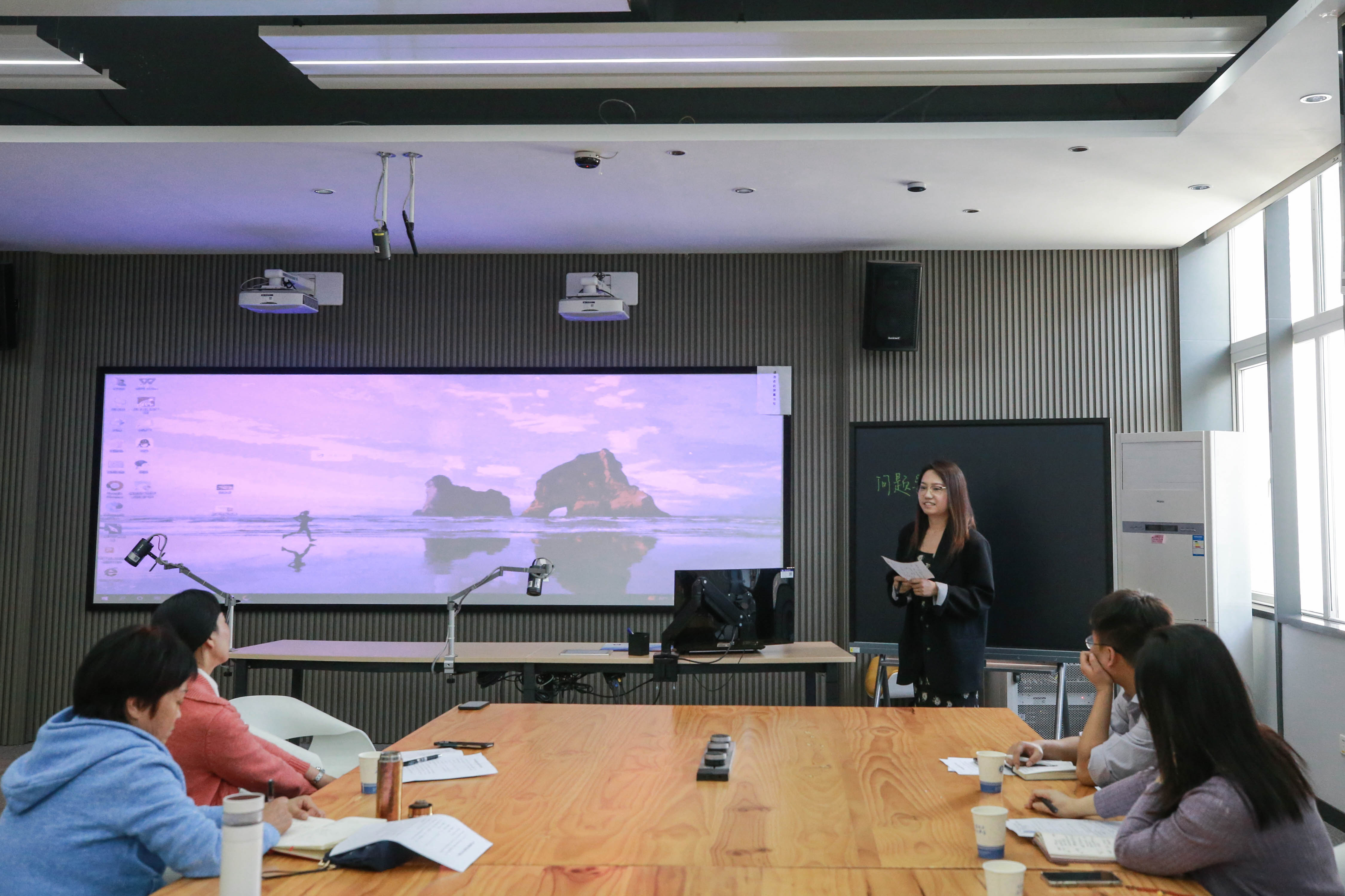 接着,张明月对此次分享做总结,十分感谢学校的职能部门在比赛中给予我们青年教师的帮助。在比赛选段时,要注重把握其学理性,使自己的观点有理可依。同时,也应尽量选择能与评委产生共鸣的选段。其次,在问题的导入部分,可以用有启发性的问题开篇以吸引评委们的目光。随后,张明月也分享了在比赛过程中对流程把控问题的经验,希望能够帮助到未来更多参与比赛的我校青年教师。