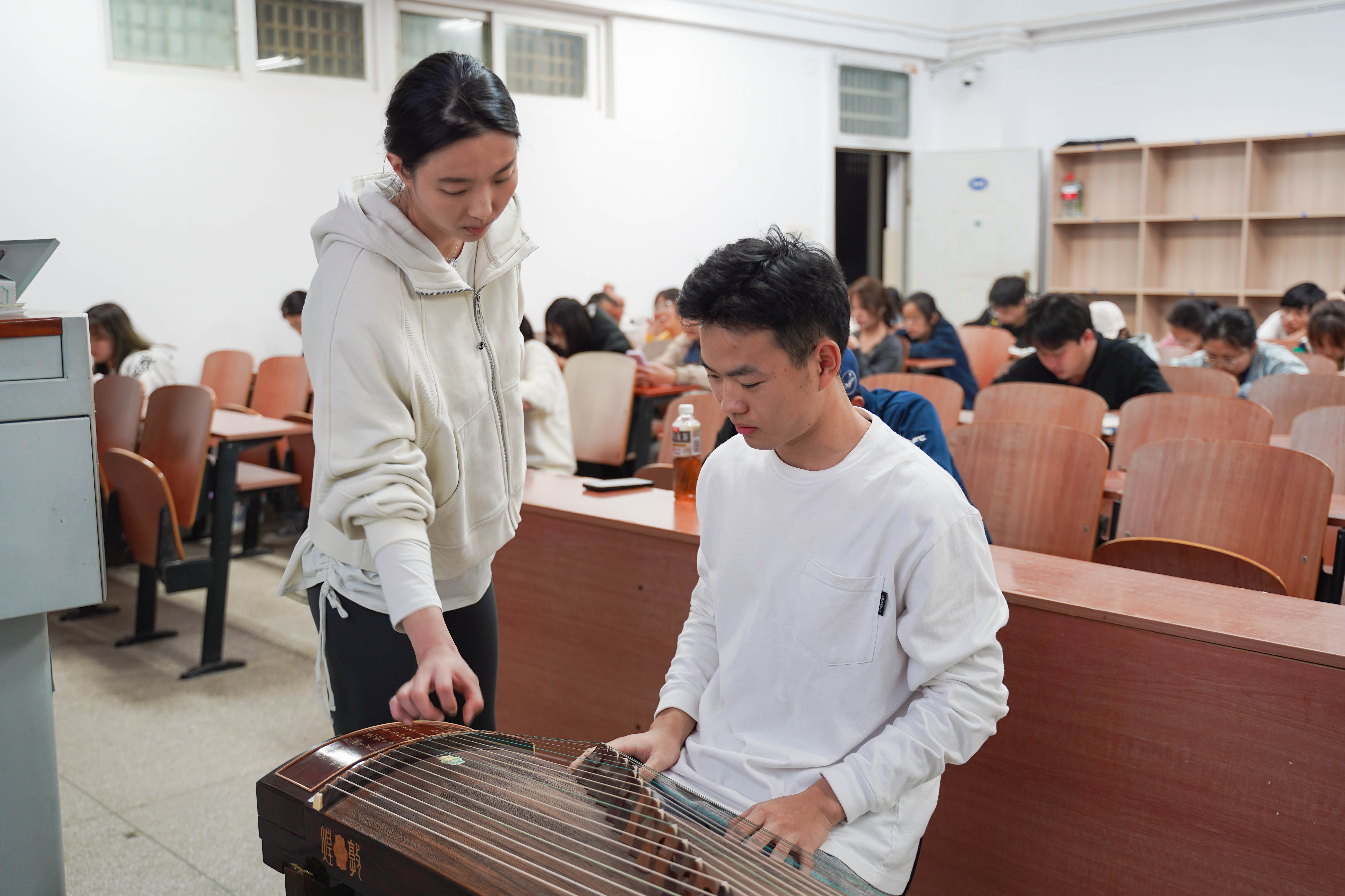 本网讯 “一曲终了,余音绕梁。”在南一405教室,每周三晚都会传来清脆悠扬的古筝声。这是同学们在教师邓祎琪的带领下,在公选课中学习古筝知识,了解古筝文化,感受中华优秀传统文化的魅力。