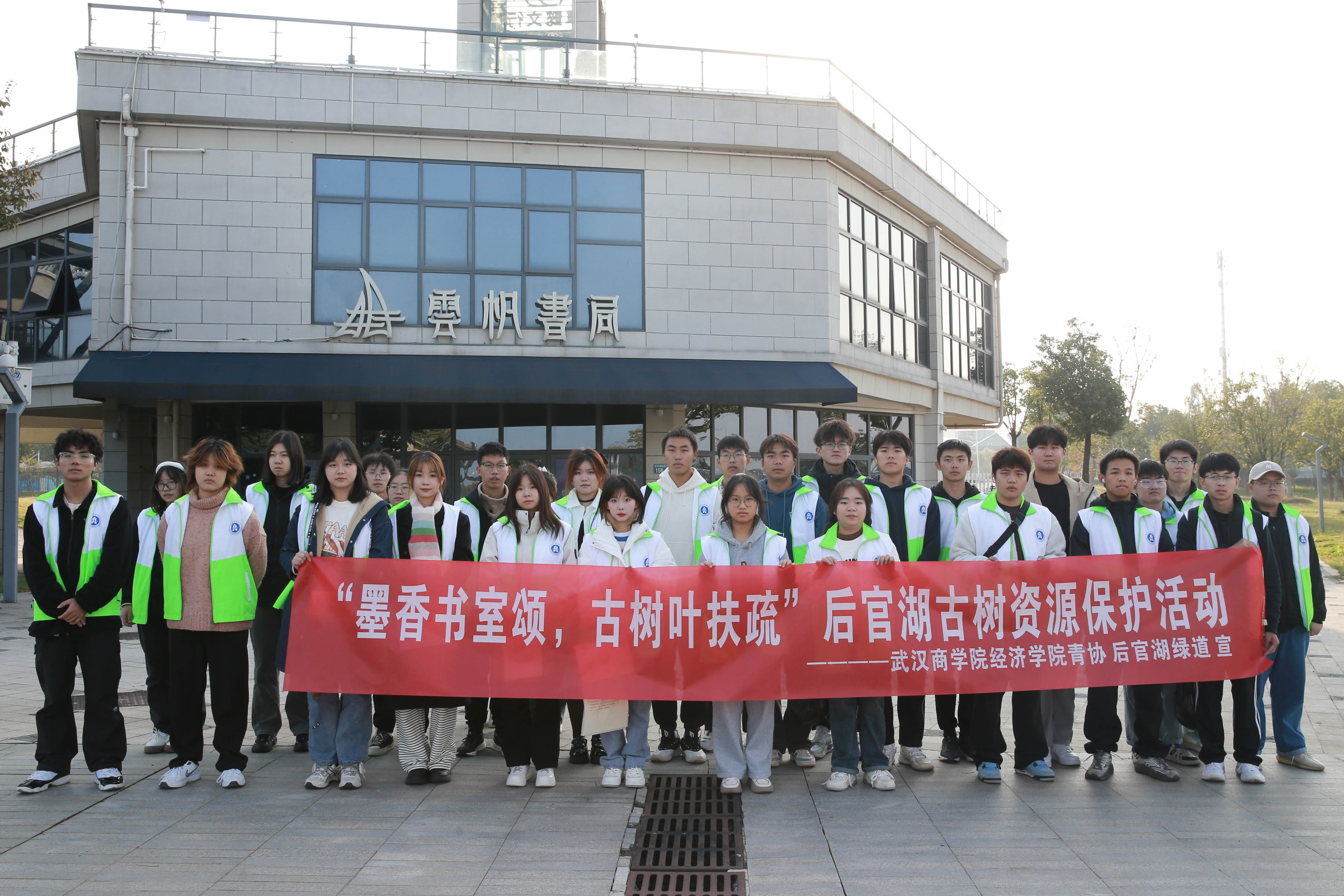 本网讯 11月14日,由我校经济学院主办的“墨香书室颂,古树叶扶疏”的后官湖古树资源保护宣传活动在后官湖绿道开展。30位同学参与此次活动,在实践中增强对后官湖古树的认识,同时在参观古树途中为后官湖绿道进行垃圾清理。