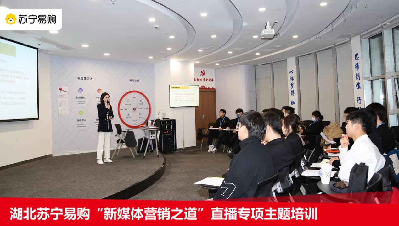 苏宁易购一直致力于人才培养,将新媒体营销工作作为流量建设的核心重点。为更好地赋能终端新媒体营销专业能力,武汉大区门店运营中心市场营销部与人力资源部于11月14日联手举办了“新媒体营销之道”专题培训。本次培训首次将高校资源引入企业内训,得到了我校工商管理学院的大力支持,标志着我们在校企合作办学、产教研融合方面迈出了新的步伐。