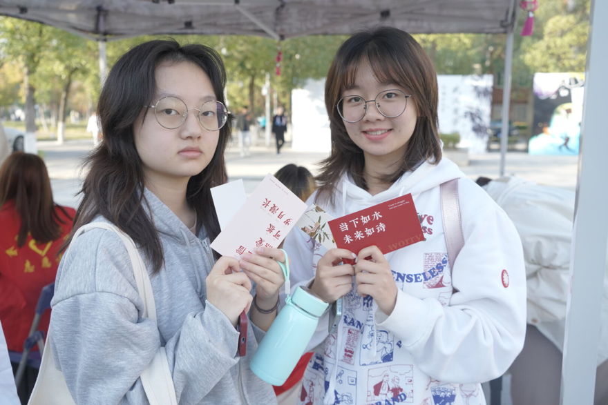 第二个小游戏是由同学们随机抽取写有节气名称的卡片,用卡片上的节气来造句。游戏不仅完美契合了节日的主题,而且通过造句,可以加深同学们对节气知识的了解,加强节日氛围。第三个小游戏,抽取一张卡片,卡片上的内容有:捡一个垃圾、向他人问好等;完成卡片任务即可获得小奖品,同时同学们也可以自己写一份卡片任务加入到卡池中,将善意传递下去。“同学,来尝尝我们食品青协的志愿者亲手制作的雪花酥吧。”志愿者余奕颖热情地招呼路过的同学们来品尝雪花酥并邀请他们参与游戏。2022级商务经济学一班郑志伟在参与了本次活动后感叹:“能在学校感受到家的温暖并加深对传统文化的认识,我觉得很幸福!”