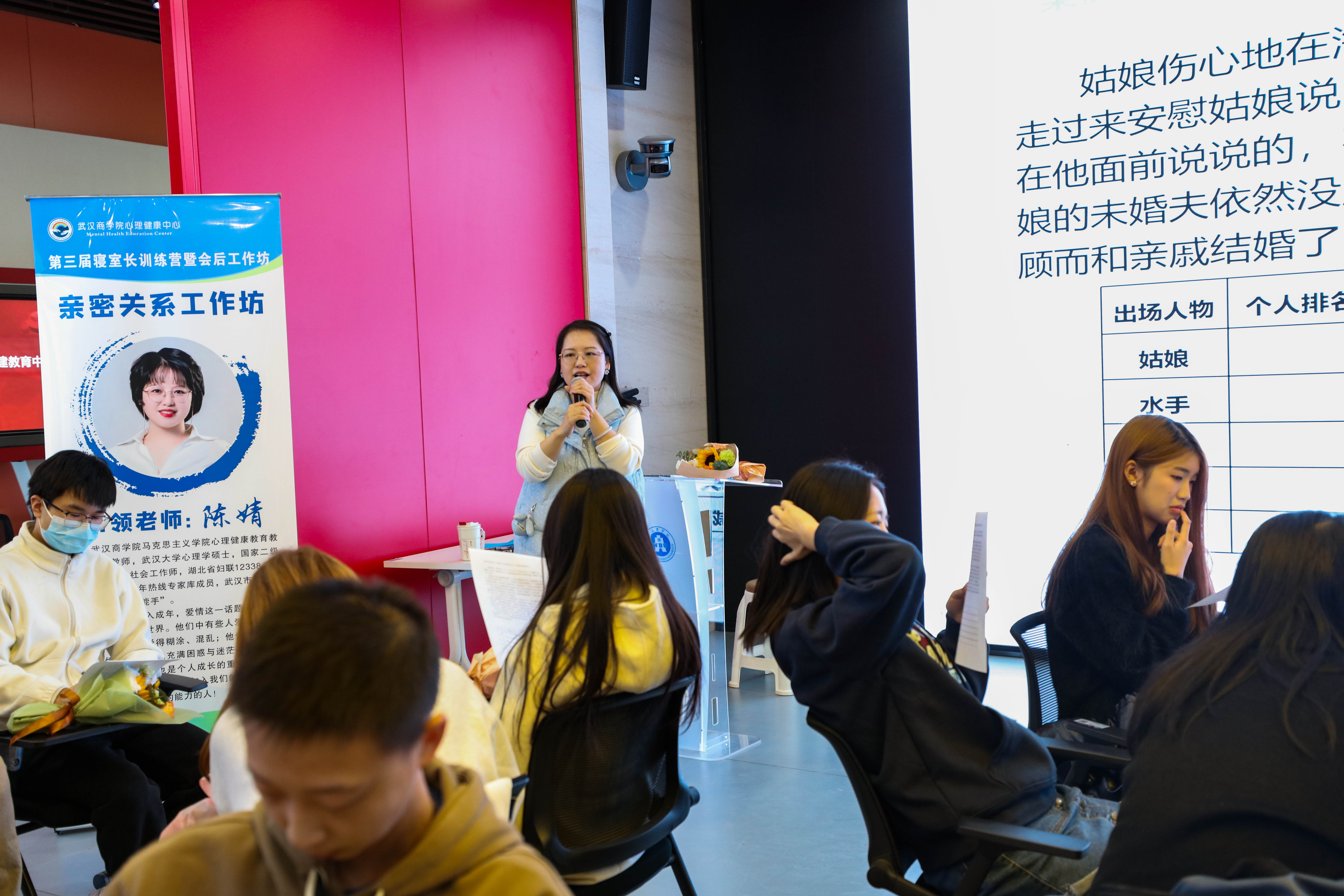 人际沟通、亲密关系、压力调节、情绪管理、职业生涯、悦纳自我、沙盘体验为主题的工作坊,在今年5月份开展寝室长工作坊时就很受学生欢迎,立足学生需求,本届寝室长训练营持续推出工作坊。2023级食品质量与安全二班的李宋莲分享道:“通过这次人际沟通工作坊,我学到了很多。我们寝室也吵过架,也是通过沟通化解的矛盾,希望之后我可以把我学到的技巧用在寝室生活中。通过沟通,我还认识了一个新的好朋友,感到非常开心。”亲密关系工作坊运用“五毛和一块”的小游戏破冰,从爱的5种语言教学生如何表达爱,探索自己爱的方式。最后用情景剧演绎的方式演绎恋爱与学习、恋爱与生活如何处理。职业生涯工作坊通过OH卡片、模拟“公司”团队搭建、定向讨论使学生能够看见自己的诉求,探索自我需要,明确自己未来的职业方向,清晰自身位置和优势。我校心理健康教育中心将持续多维度、多层次推进寝室长训练营,促进寝室成员之间行为规范、生活方式、价值理念、理想信念的成长与发展,提升寝室长自我管理、自我服务、自我监督、自我教育的功能。