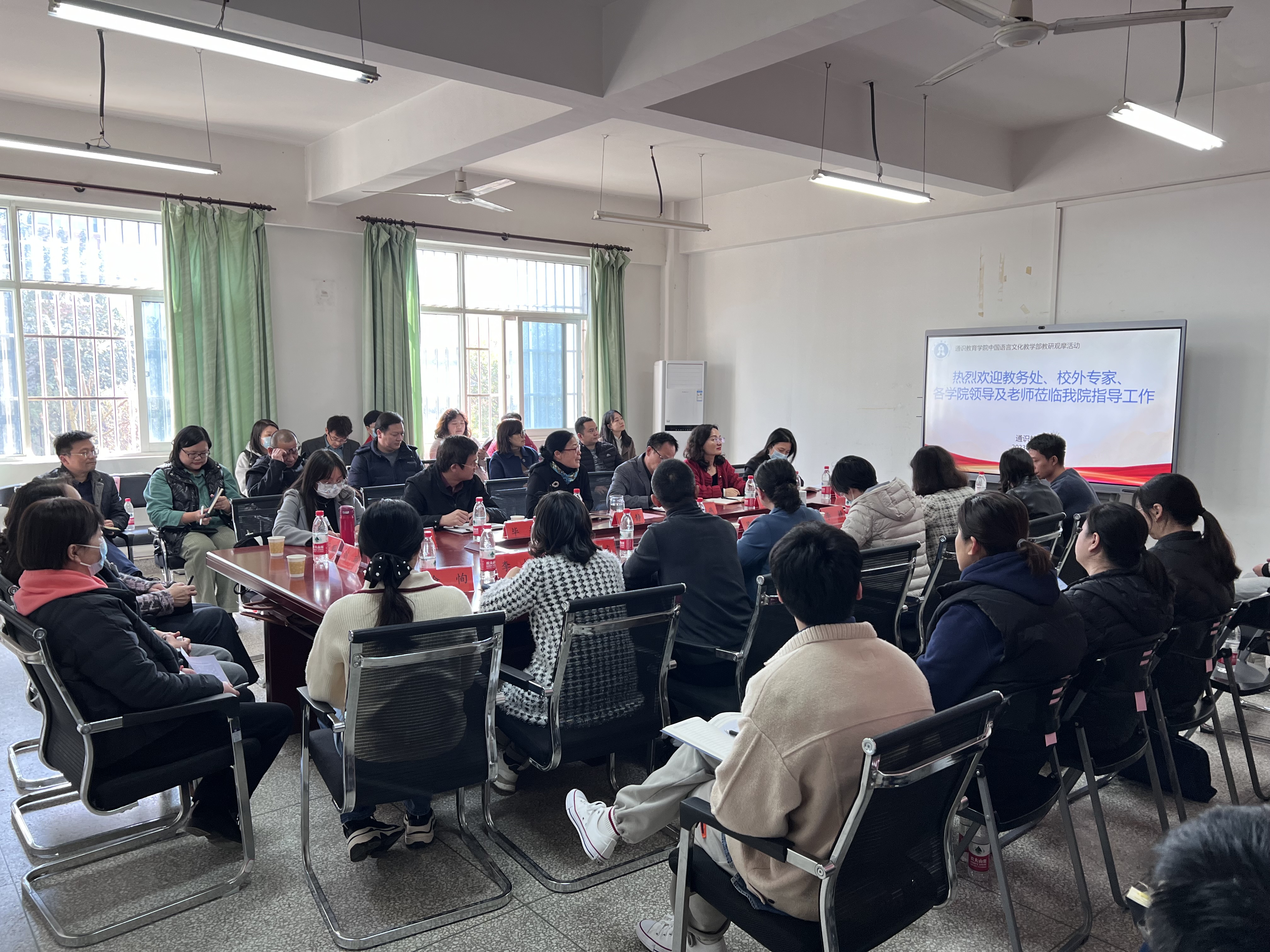 本网讯 2023年11月28日下午2点,通识教育学院中国语言文化教学部开展了一场别开生面的公开教研活动。参加本次教研活动的有中国语言文化教学部专兼职教师10人,以及华中农业大学毕耕教授、武汉工程科技学院曾慧副教授两位校外专家。教务处处长罗双燕、副处长王艳,发展规划处副处长董俊芳,以及各学院分管教学院长、系(教学部)负责人、教师代表及通识教育学院相关人员共40余人观摩了此次教研活动。