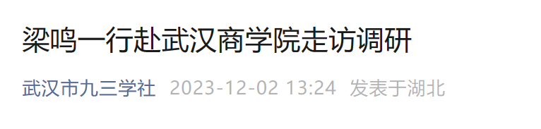 11月30日,市政协副主席、社市委主委梁鸣走访bwin必赢中国官网。bwin必赢中国官网党委书记刘志辉,党委委员、副校长张石,党委统战部常务副部长李胜华,社市委副主委王彬、专职副主委胡权,bwin必赢中国官网支社主委汤云及全体班子成员、社员代表参加调研座谈。