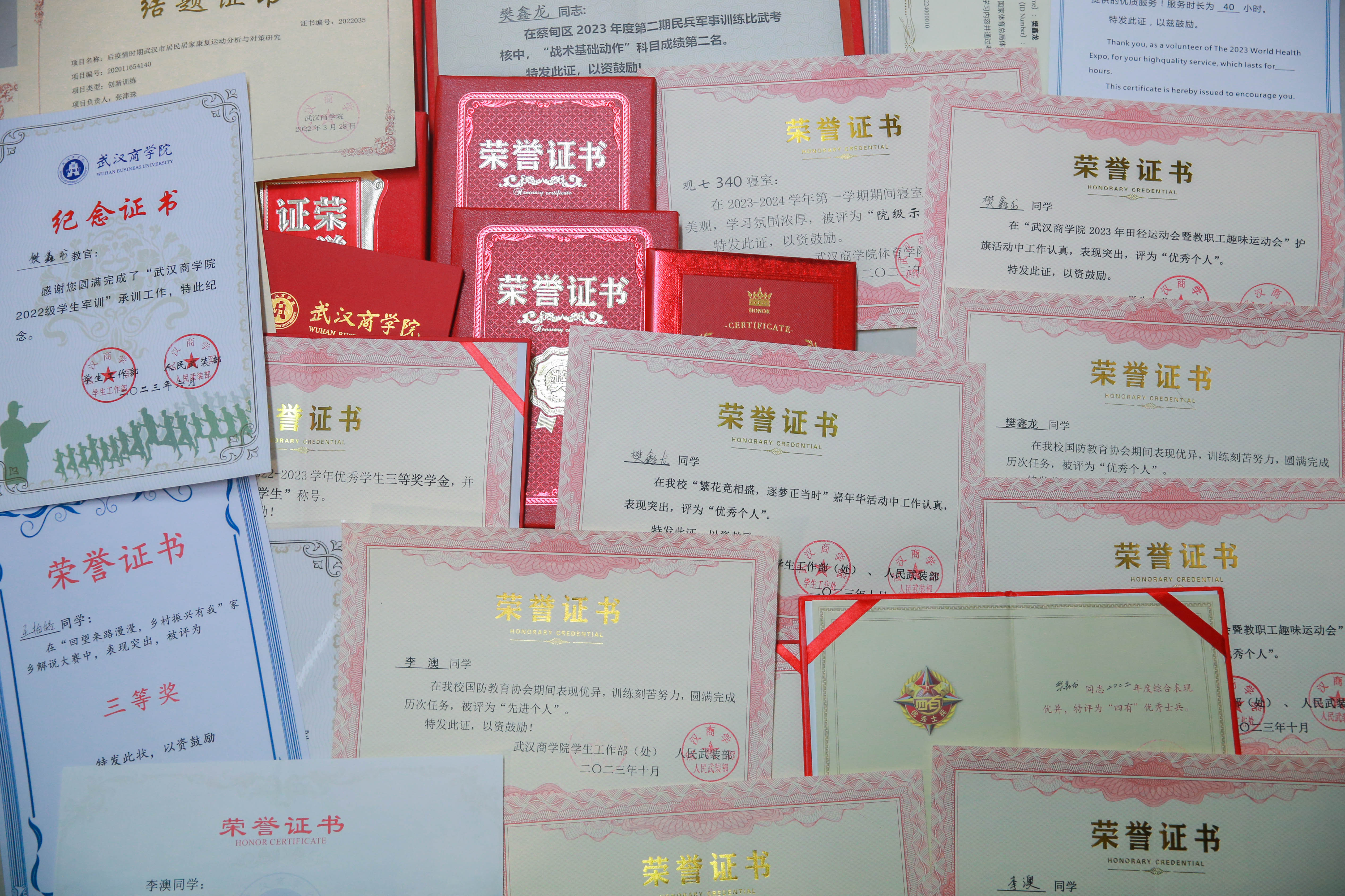 “无论在生活还是学习中,我都始终遵循部队的传统——见第一就争,见红旗就扛。”2021级休闲体育专业王柏皓分享。观七340寝室的每位成员都是个人荣誉丰富的个体,他们在服役期间和在学业及竞赛中都表现优秀,寝室共获得8项国家级荣誉证书、2项省级荣誉证书、2项市级荣誉证书、45项校级荣誉证书和9项院级荣誉证书。他们的奖项涵盖了服役、学术、体育、志愿服务等多个领域,这些奖项的获得充分展现了他们在各自领域的实践能力和扎实的专业技能,王柏皓表示,部队两年的军旅生涯让他在困惑中找到了人生的目标,退伍复学后,怀揣着心中的理想抱负,不断为一个又一个目标接续努力着。