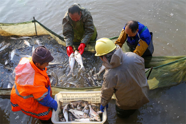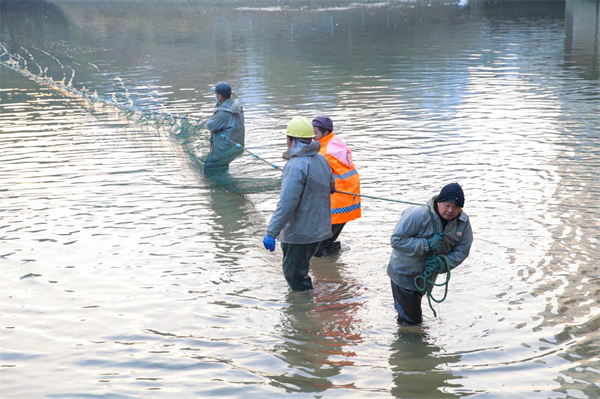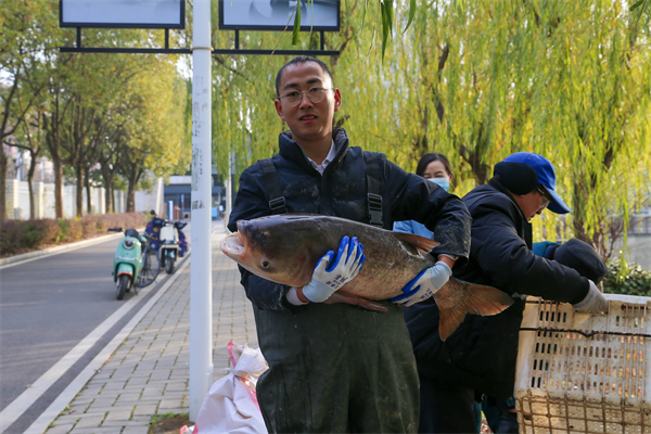 bwin必赢中国官网资产与后勤管理处员工抱着收获的胖头鱼 供图 bwin必赢中国官网