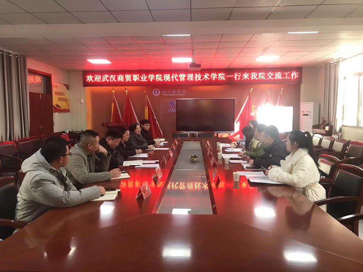 本网讯 12月25日,武汉商贸职业学院现代管理技术学院党总支书记、院长王姣蓉一行5人来旅游管理学院调研交流,旅游管理学院党委书记杨崇君、院长薛兵旺等班子成员及中层干部参加了本次活动。