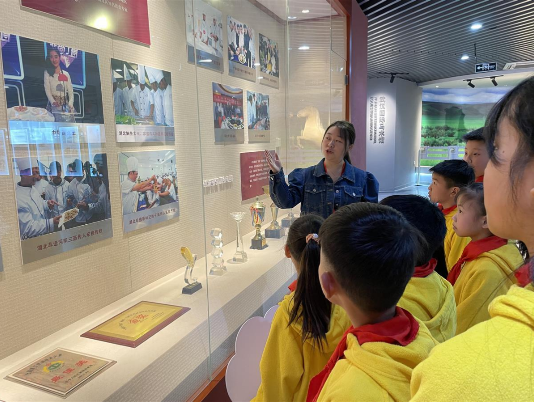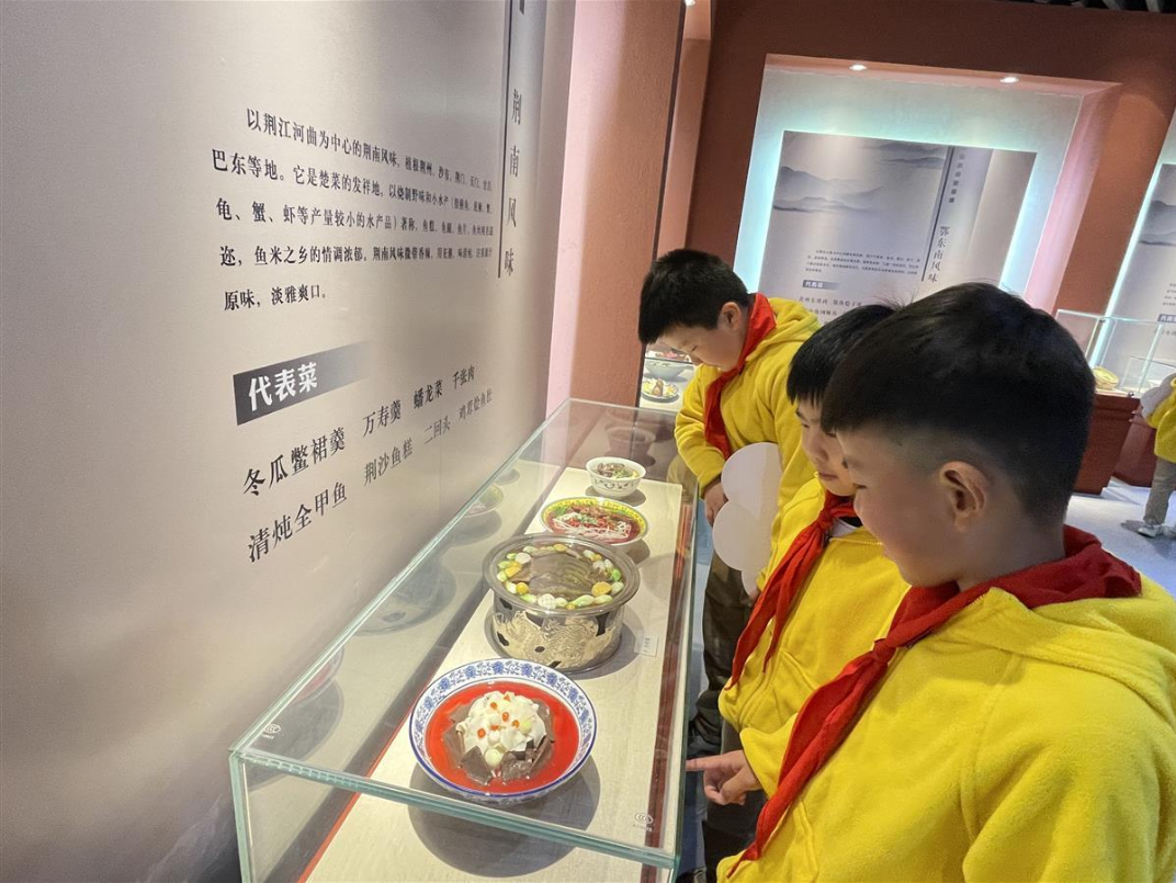 学生们抵达场馆后,认真聆听和参观。听完楚菜博物馆工作人员的讲解,该校六年级(3)班的学生余馨灵感触很深,自发地担任起了楚菜讲解员。“荆沙鱼糕、冬瓜鳖群羹、清蒸武昌鱼……这些美味可口的饭菜都是湖北菜。”她为同学们介绍,楚菜发展到如今有3800多个菜品。