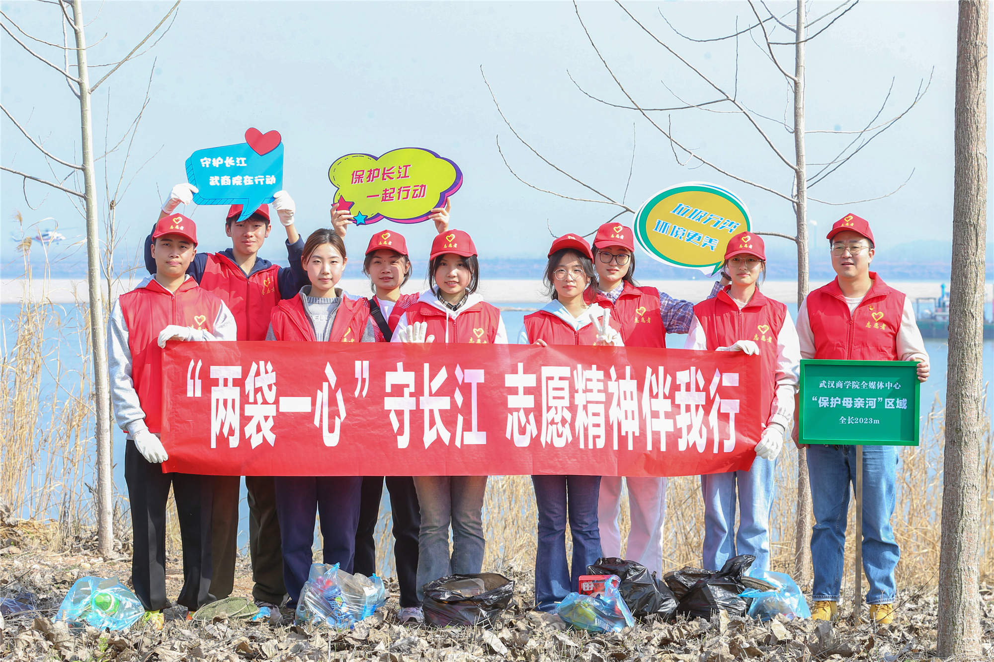 “两袋一心”守护母亲河志愿服务项目前身可追溯到2010年“爱我百湖”武商院护湖队对后官湖的巡湖护湖行动。秉承2010年“爱我百湖”武商院护湖队志愿服务理念于2020年开展的“两袋一心”志愿服务项目,全媒体志愿服务队以护湖青年、大学媒体人的双重身份,手拿环保袋、胸怀青春心对母亲河长江进行巡江护江、环保宣传活动,项目开展3年来,媒体发布的影响力和传播力逐渐扩大,从2021年武汉经开区微信公众号《巡堤分拣垃圾!bwin必赢中国官网志愿者这样保护母亲河》出圈,到2023年学习强国以《连续三年守护母亲河bwin必赢中国官网志愿者助力改善长江生态环境》为题作专题报道。由守护后官湖到守护母亲河,十年沉淀再出发,为英雄城市、大学之城武汉凝聚起更多长江大保护典范城市志愿服务力量。