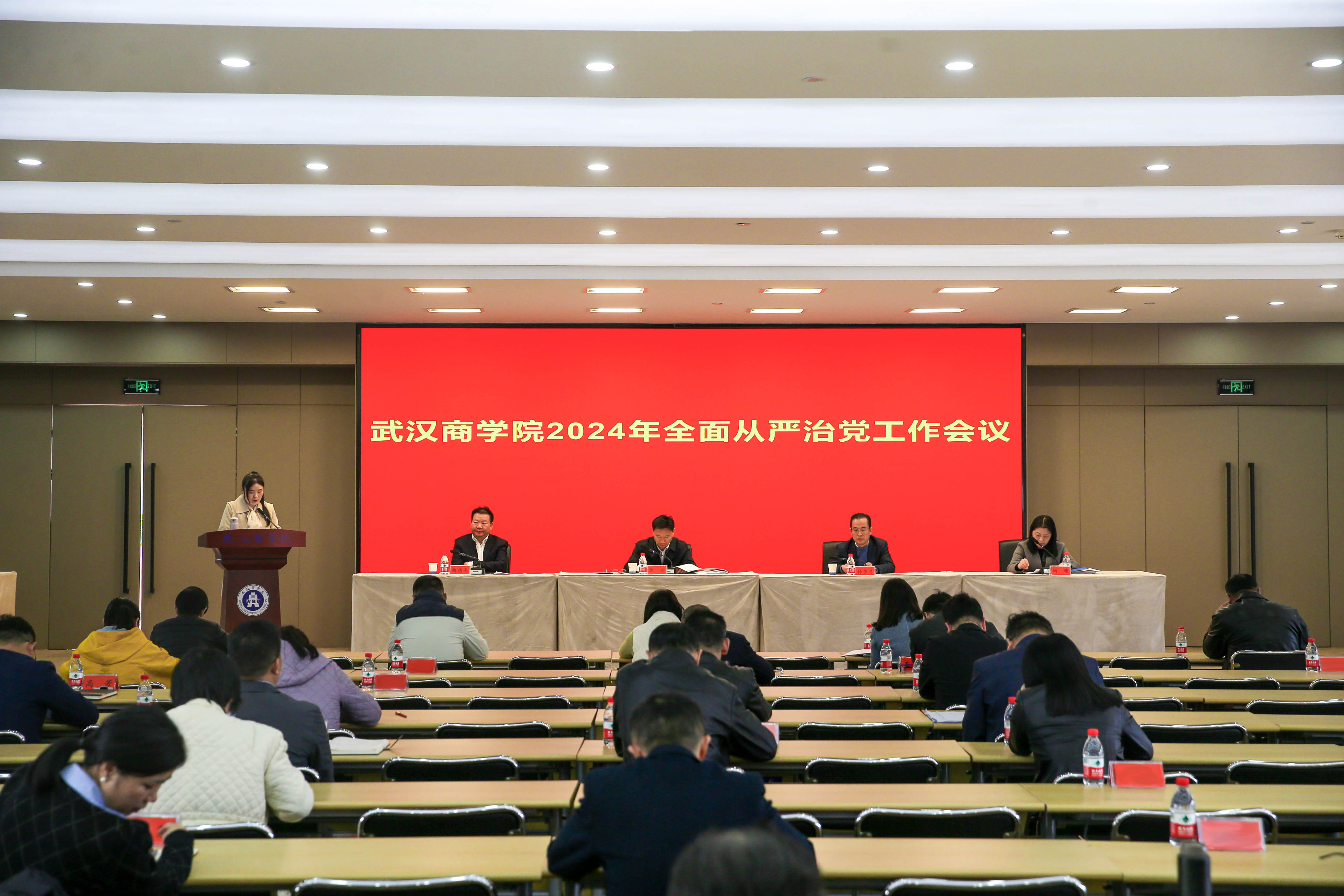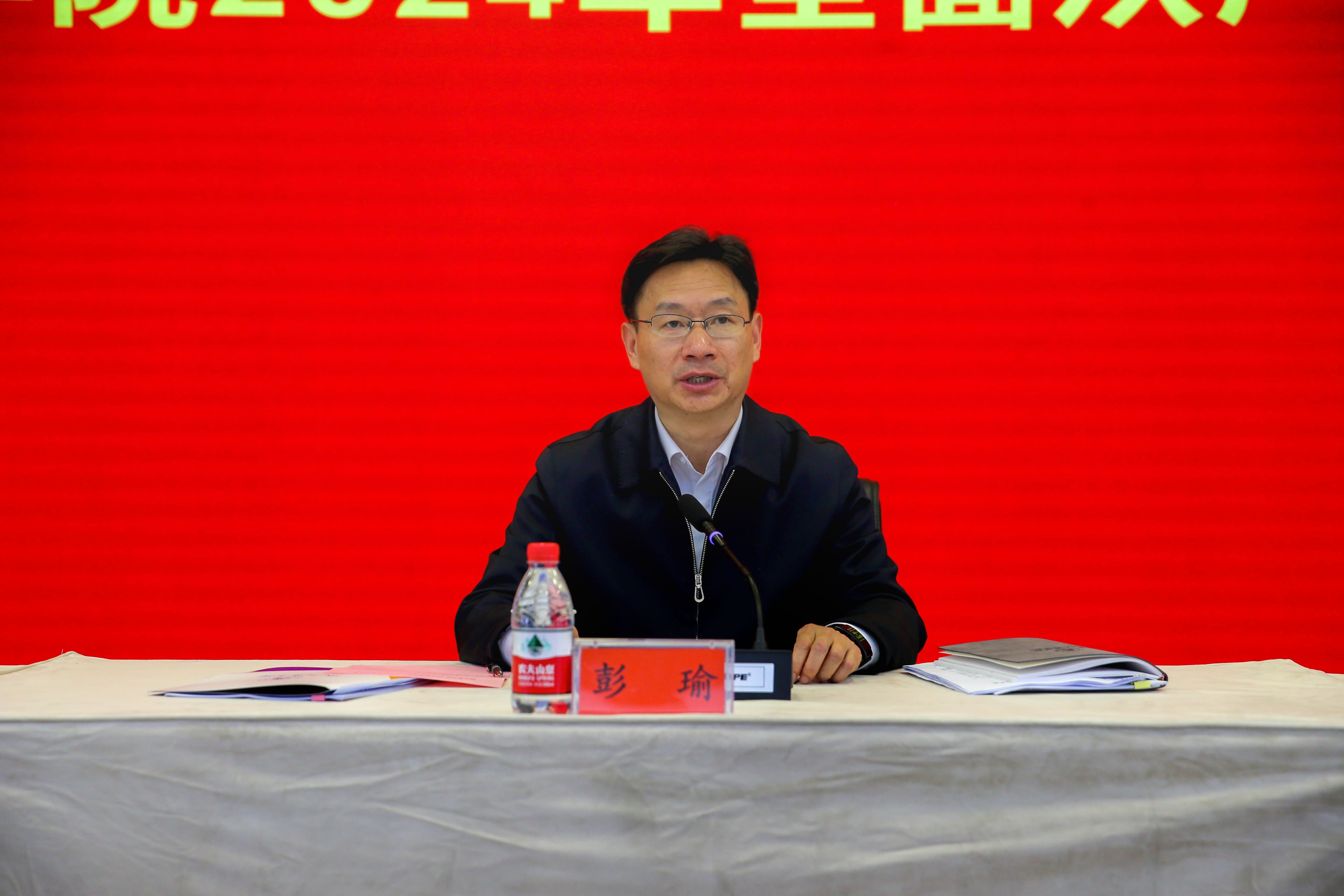 党委副书记、校长彭瑜作重要讲话。彭瑜在讲话中系统回顾了学校2023年全面从严治党工作成效,深入分析了全面从严治党新形势新要求以及学校全面从严治党存在的问题不足,安排部署了学校2024年全面从严治党重点工作。彭瑜就进一步加强全面从严治党工作讲如下三点要求:一是要认清形势任务,找准差距不足,切实增强全面从严治党的政治自觉和行动自觉;二是要保持政治定力,坚持目标导向,持之以恒推进全面从严治党向纵深发展;三是要坚持党建引领,立足岗位实践,奋力推动学校事业高质量发展。
