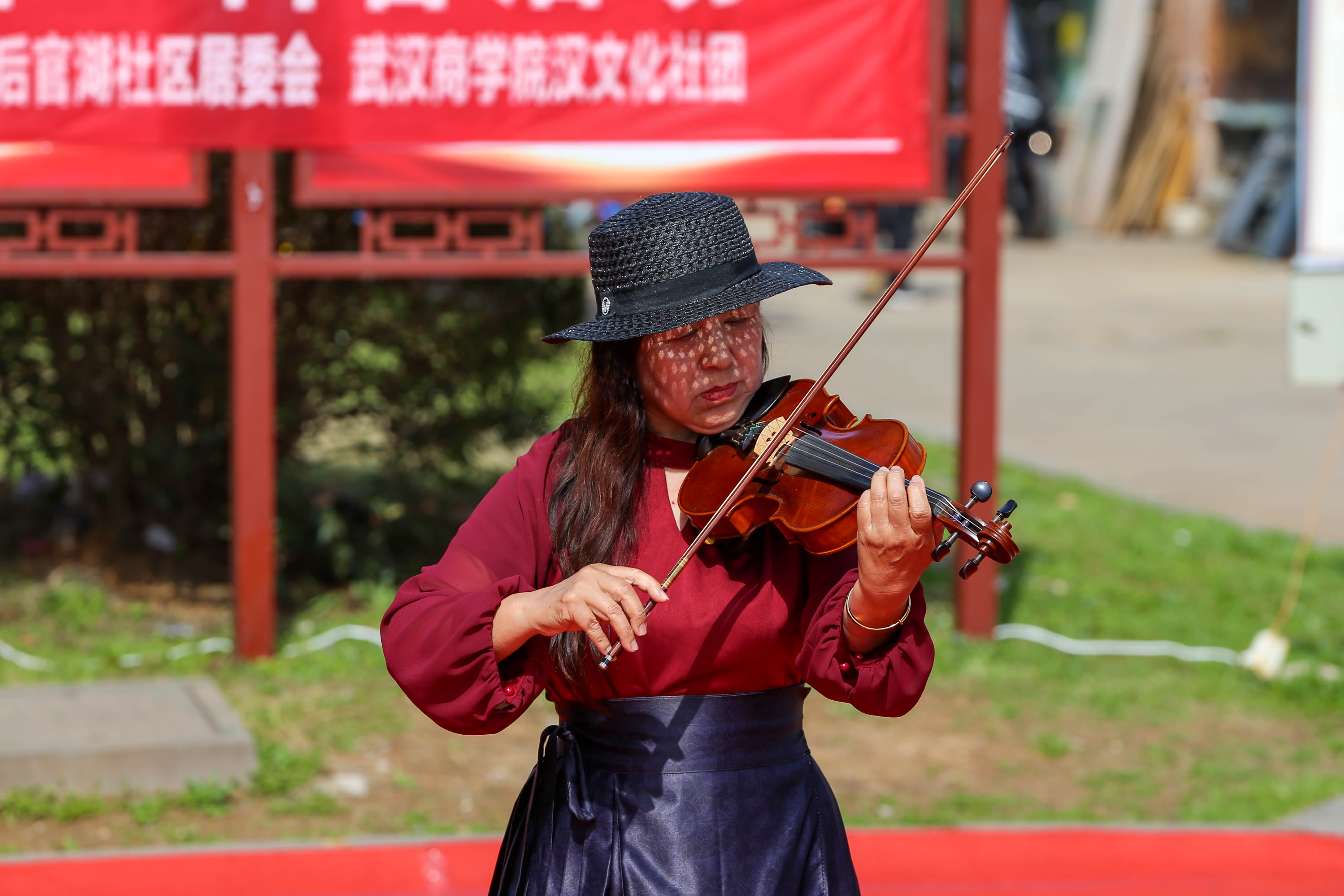 百花争放之时,最堪游赏。花朝节在民间又被称为“姑娘会”,这一天,女孩们借此相聚玩耍,结交朋友;文人雅士也会邀请三五知己一起游春。在花朝节这天,人们踏春出行,热闹非凡。拾韵汉文化协会的成员们身着汉服,以走秀和舞蹈的形式为大家展现了各朝代的汉服。让大家近距离地看到了汉服的美。在舞蹈与走秀之后,由社区代表带来小提琴演奏《我和我的祖国》,展现家国情怀。
